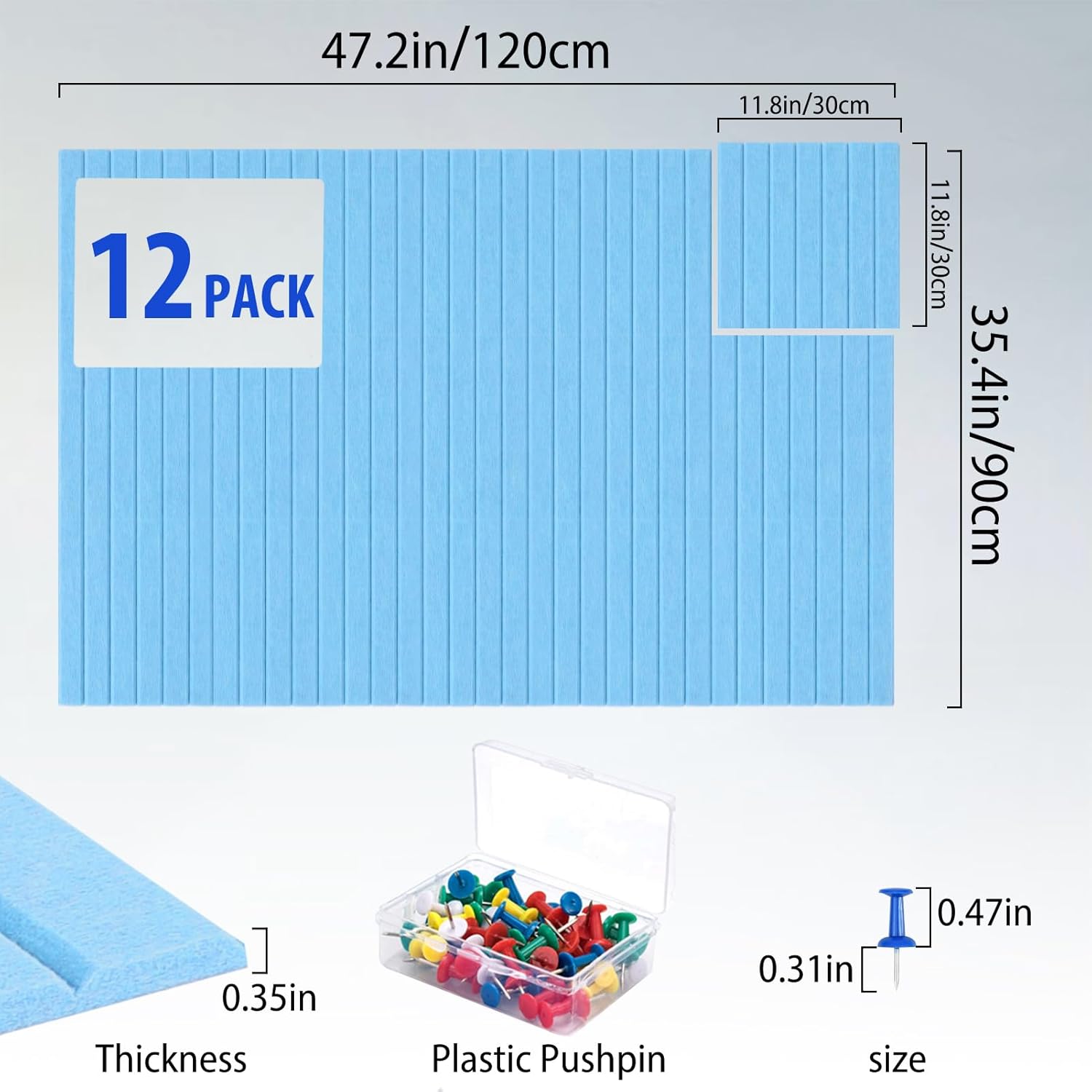 Cork Boards for Walls 48" x 36" Felt Board Alternative, 12 Pack Felt Wall Tiles Bulletin Board, Large Cork Board for Office Pin Board Tack Board Cork Boards