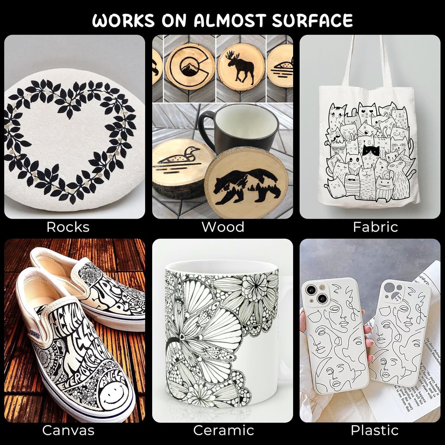 - WRITES ON VIRTUALLY ANY SURFACE - Unleash your creativity on a multitude of materials. Works flawlessly on rocks, ceramics, glass, plastic, metal, wood, and paper. Perfect for personalizing gifts, customizing accessories, and detailed craft work.