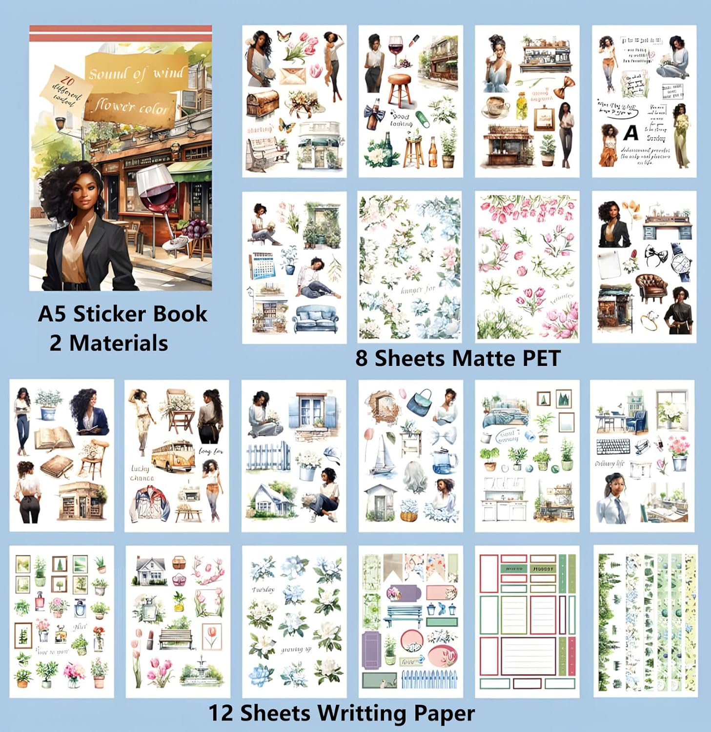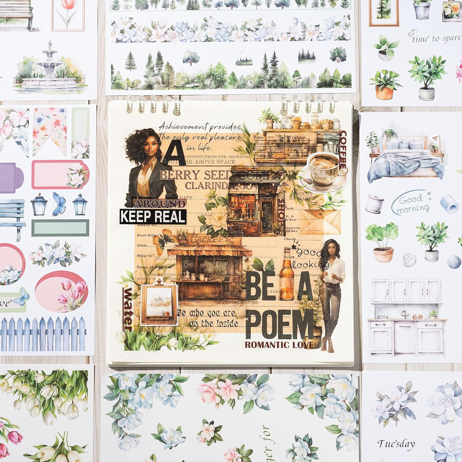 YagCu Journal Sticker Book for Journaling, Women House Junk Journal Stickers, Pre-Cut Aesthetic Scrapbooking for Adults, Decorative Ephemera Bullet Planner DIY Arts Craft Collage