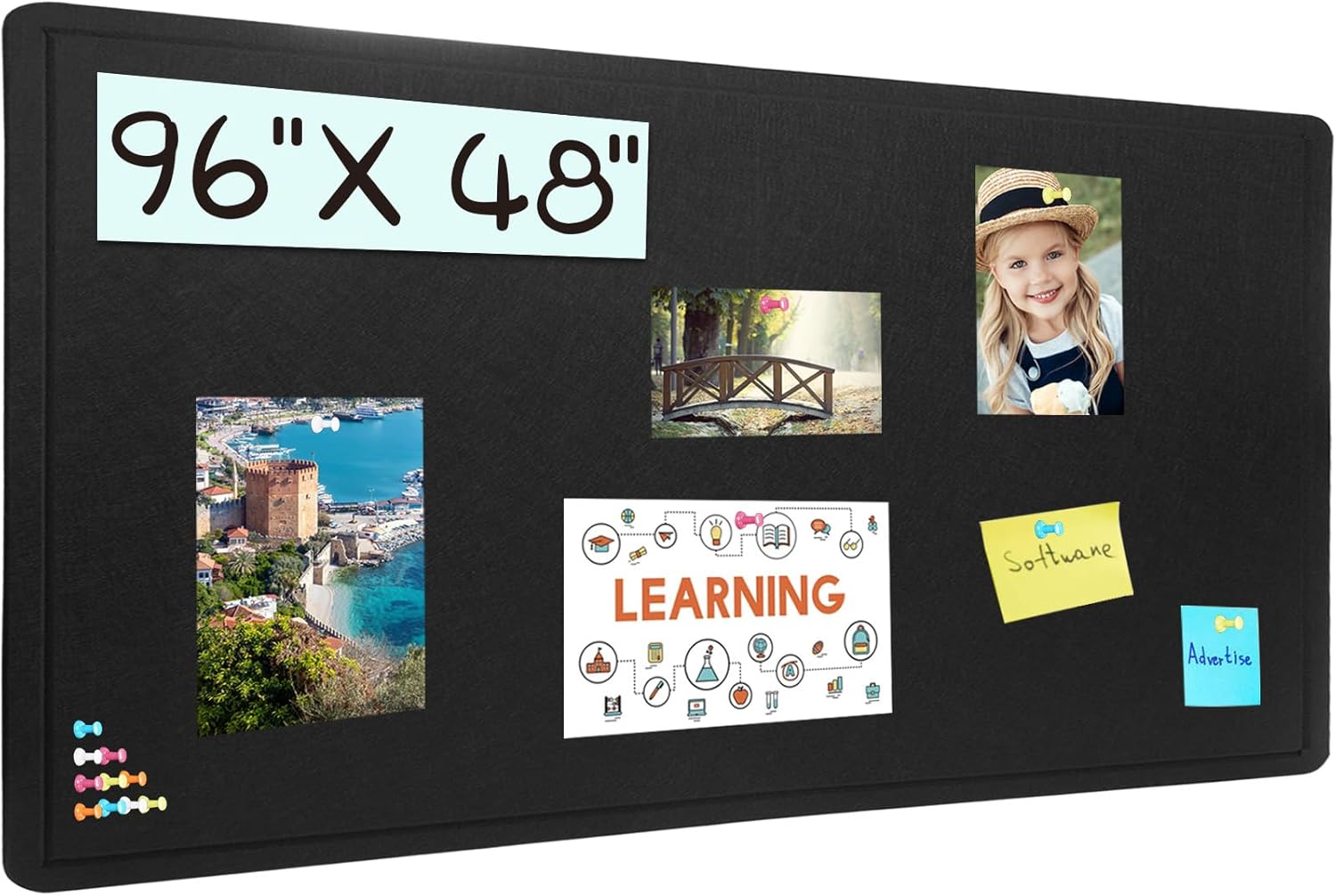 Extra Large Bulletin Board, 96 X 48 inches Cork Board with 30 Pushpin, 8' x 4' Felt Cork Board Notice Pin Board, Self-Adhesive Vision Board Mood Board Foldable Photo Board for Wall - Black