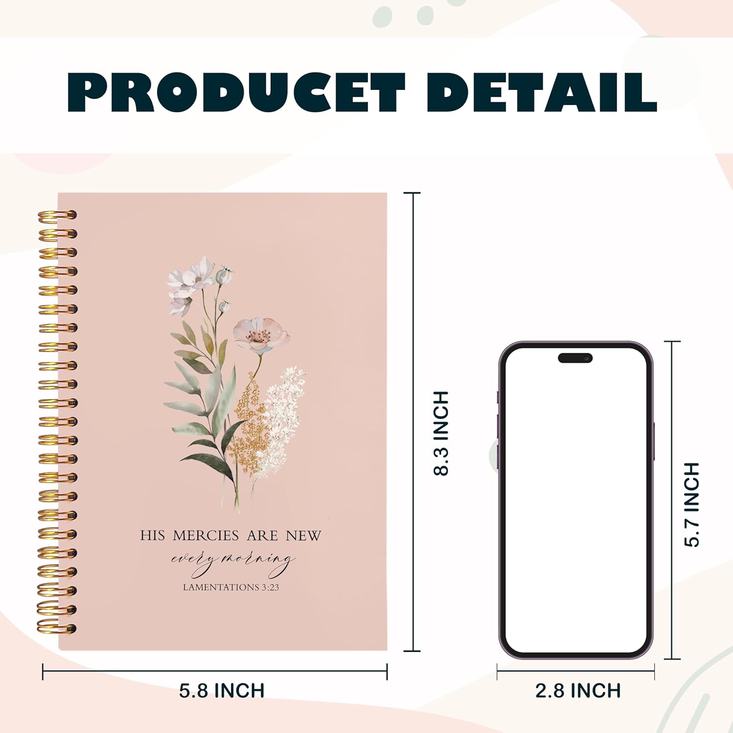 BearCake Orange Bible Christian Journals Floral Notebooks for Women Note Taking,Prayer Journal for Women, His Mercies are New Every Morning,Bible Study Journal for Women 5.5x8.3