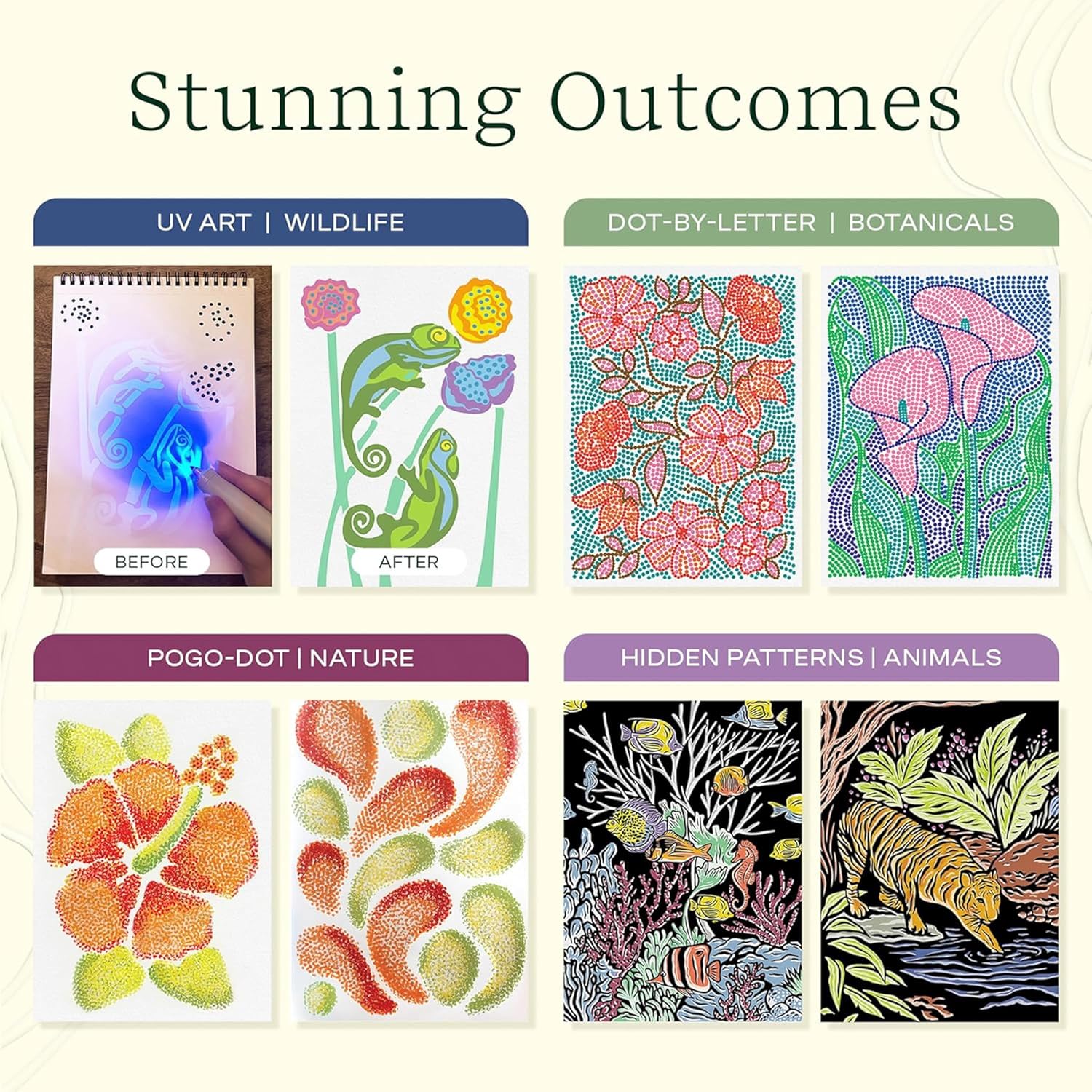 - Theme : UV Art, Pogo-Dot, Hidden Patterns, Dot-by-Letter