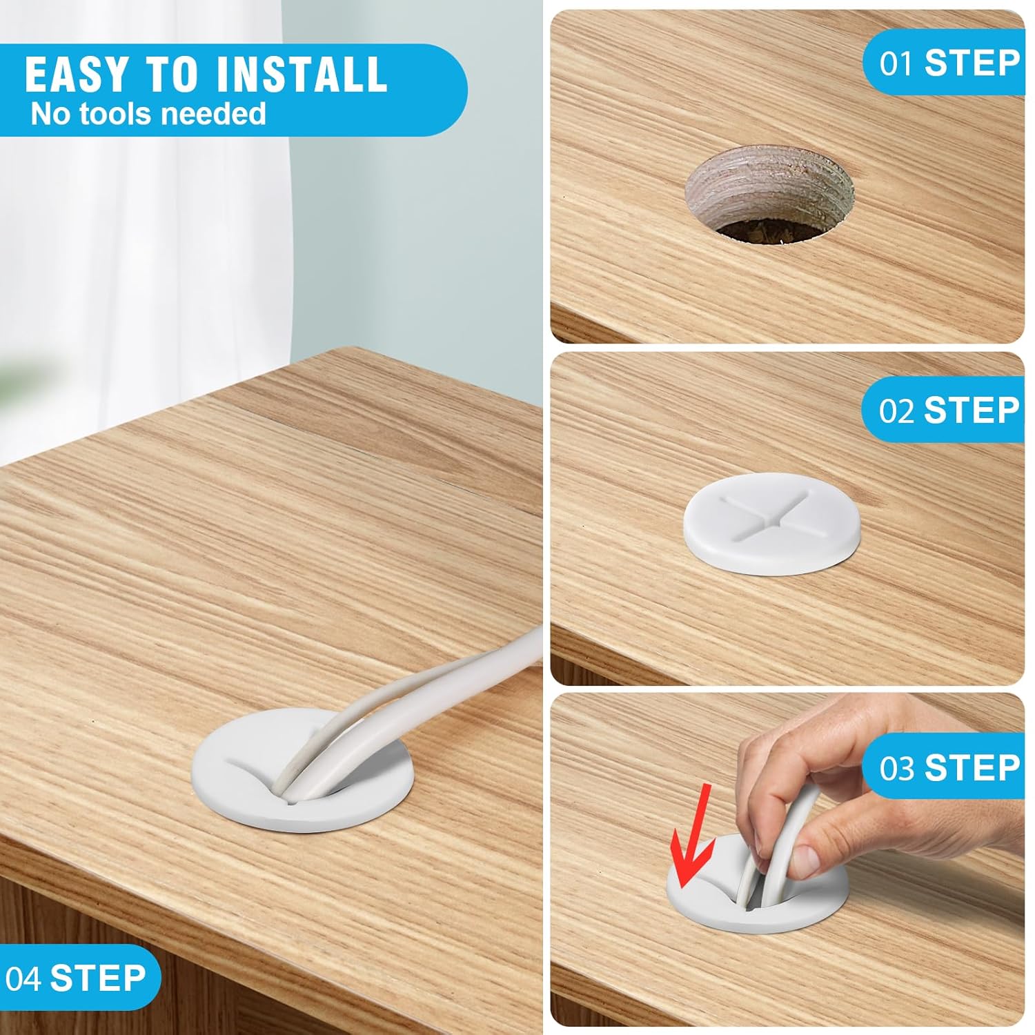 - UPGRADED CABLE MANAGEMENT -- The unique cross-shaped rubber center effectively reduces friction, and minimizes cable wear from rough desk edges. Cables pass through smoothly without damage, and the flexible opening ensures a snug fit for multiple cables while keeping your workspace tidy.
