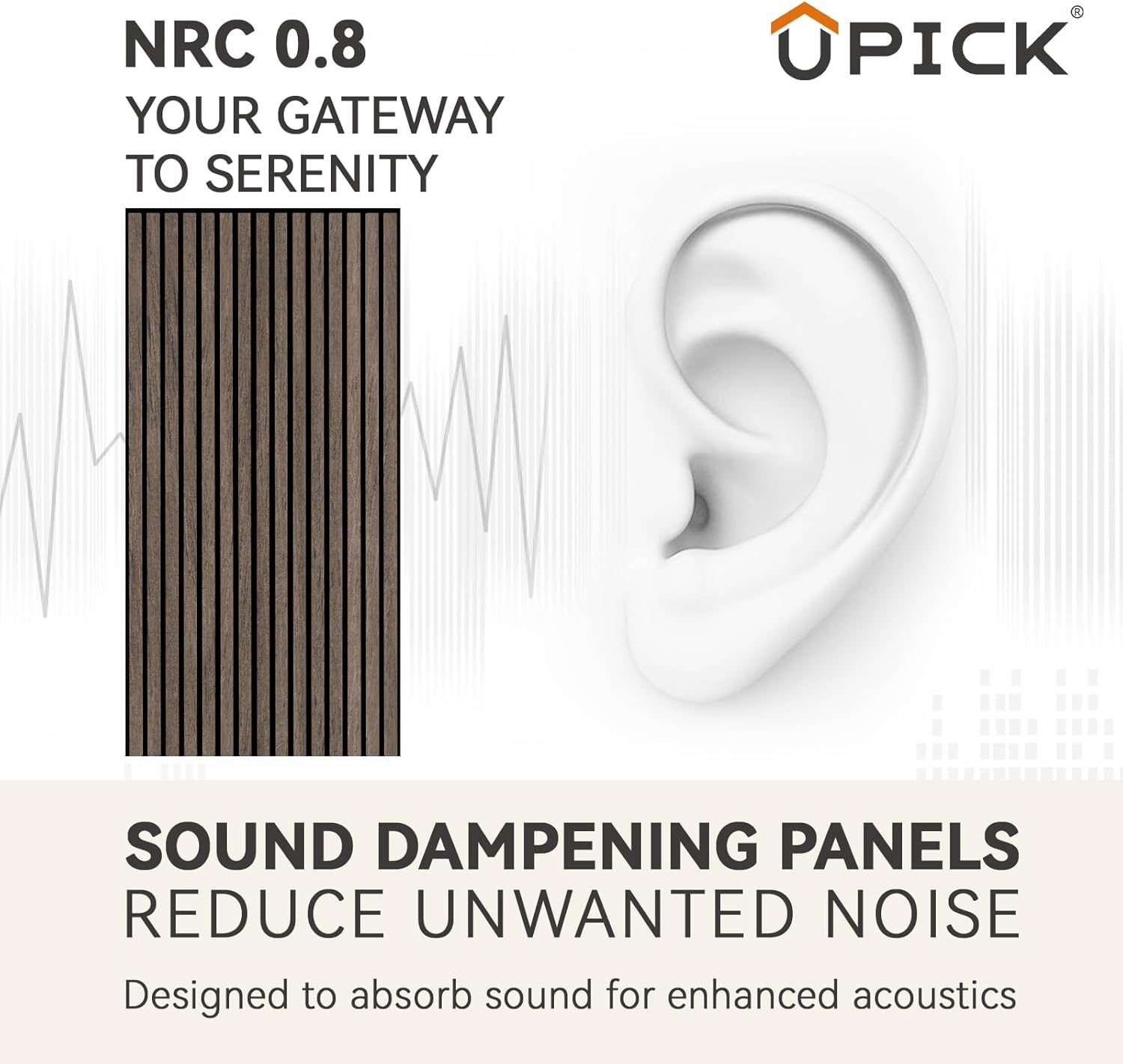 Upick MDF Acoustic Wall Panels, 4 Pack 48" x 24" 3D Slat Wood Panels for Wall, Soundproof Panels for Interior Wall Decor, Dark Walnut