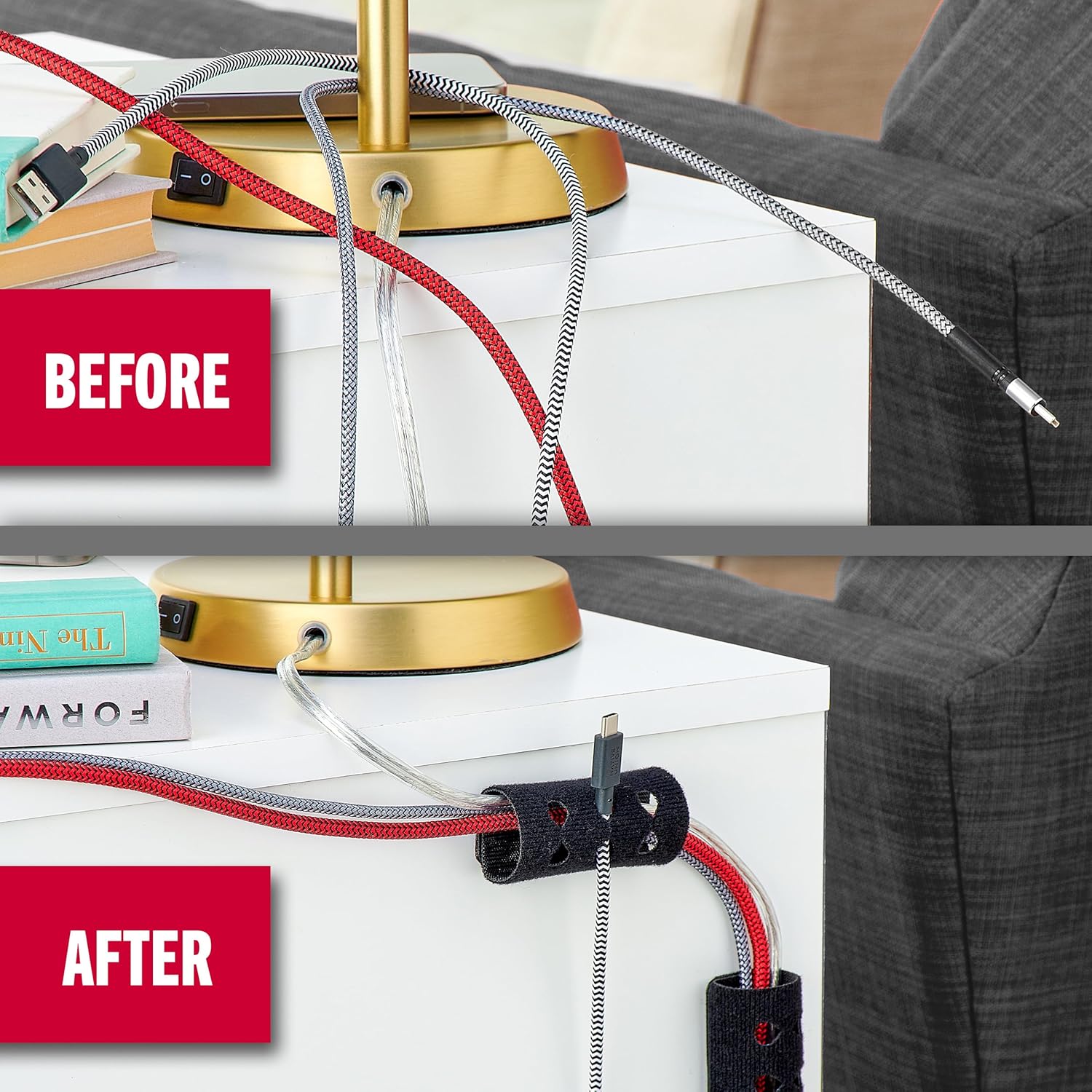VELCRO Brand Cord Organizer for Desk Cable Management, Nightstand Organization, Unique Dual Function Cable Sleeve Cord Keepers Combo, Holds Wires for Easy Access, Route to Hide, Medium 2pk Black