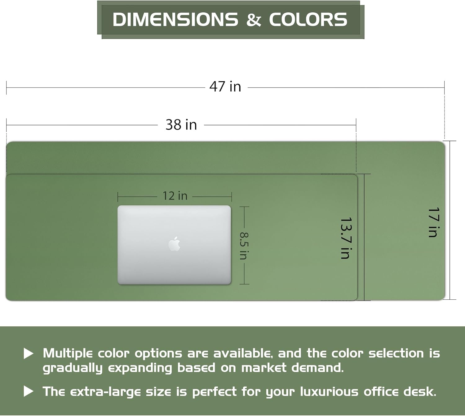 Aothia Leather Desk Pad Protector, Office Desk Mat, Large Mouse Pad, Laptop Desk Pad, Non-Slip PU Leather Desk Blotter, Waterproof Desk Writing Pad for Office and Home (Olive Green, 47" x 17")