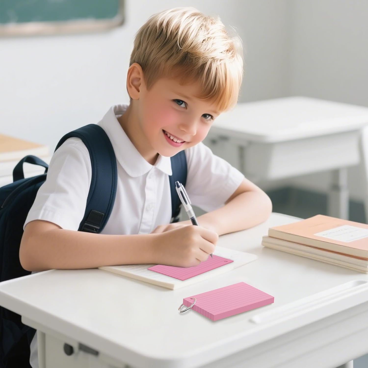 250 Count Colored Index Cards 3x5 Inch with Key Ring, 180gsm Heavy Weight Flash Cards 5 Color (50 Sheets Each), Portable Note Taking for Students, Teachers, Study Note Cards for Office Home School