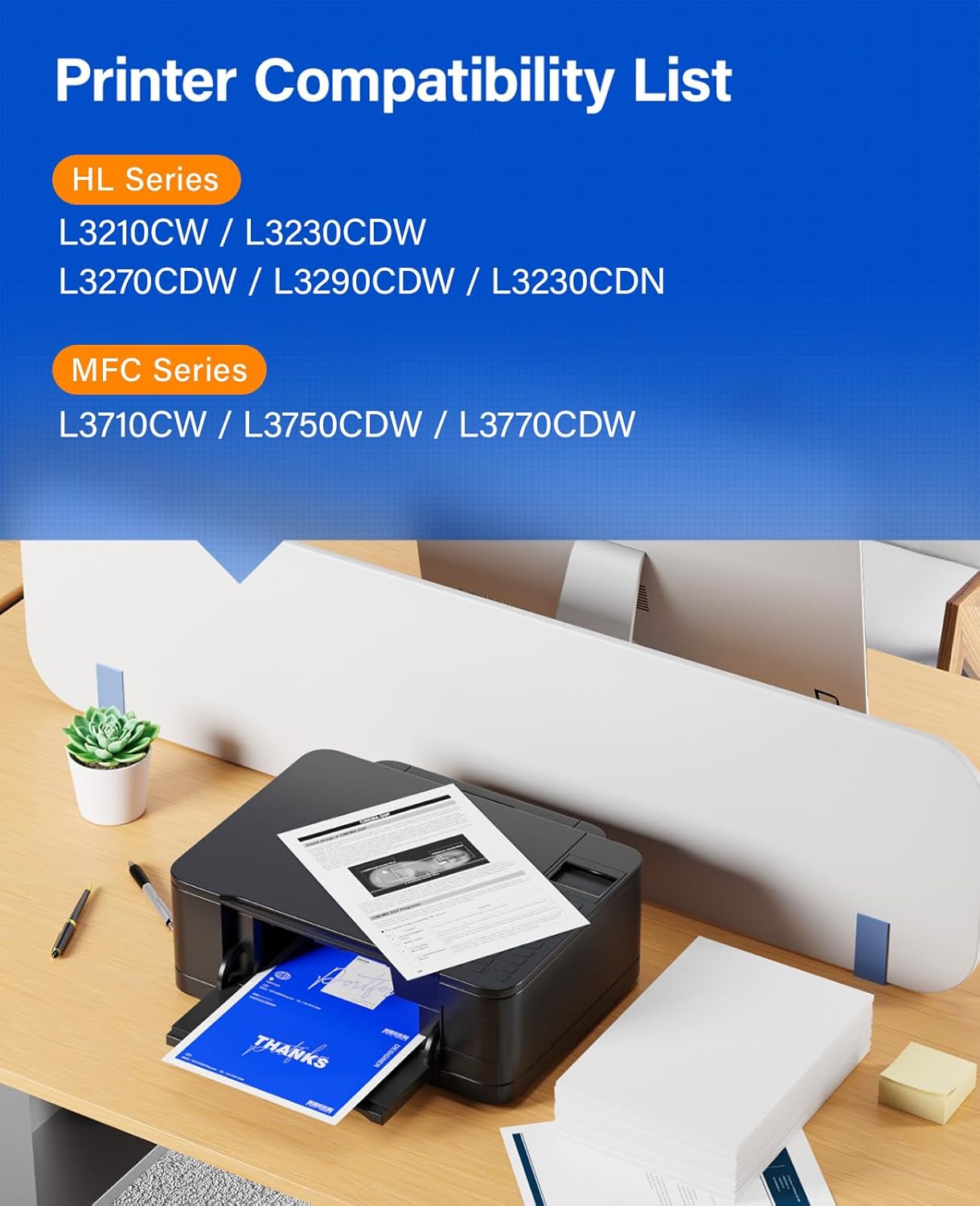 - Compatible Printer: Compatible with Brother HL-L3210CW, HL-L3230CDW, HL-L3270CDW, HL-L3290CDW, HL-L3230CDN, MFC-L3710CW, MFC-L3750CDW, MFC-L3770CDW (Please check that your printer model matches the printer model of this toner cartridge before placing an order)