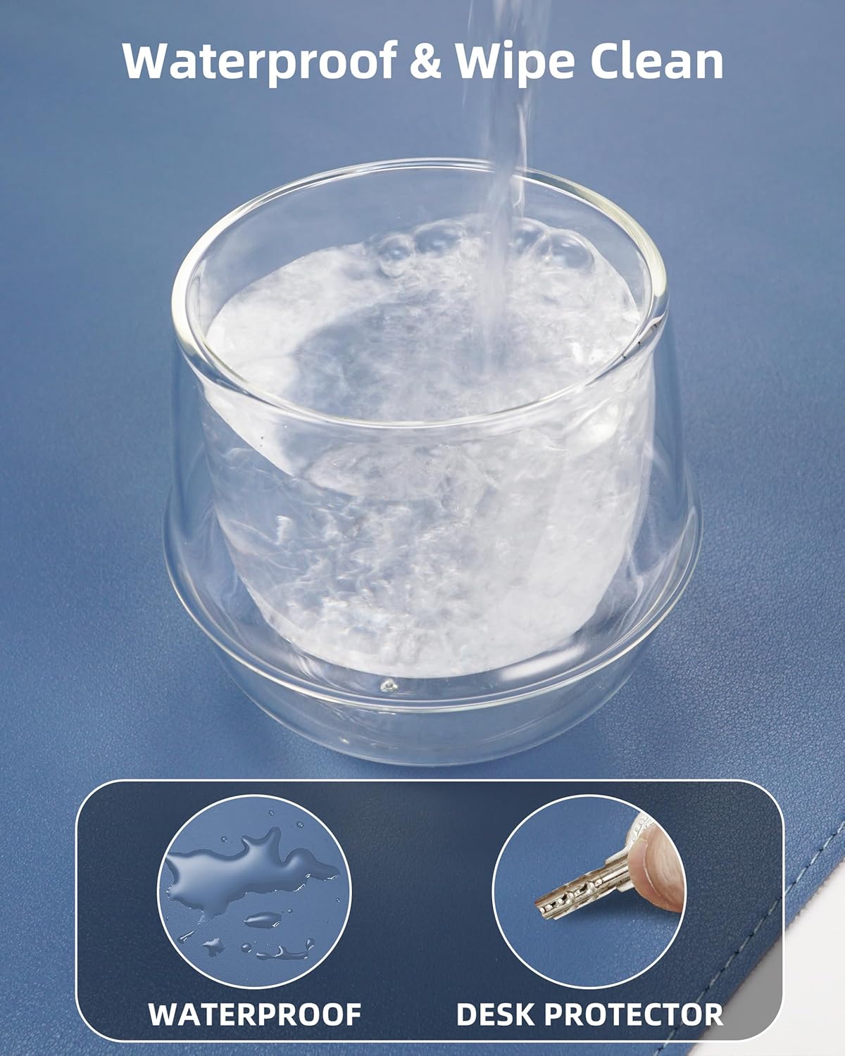 - Waterproof & Easy to Clean: Durable PU leather for the upper use side, just use cloth to wipe it, very easy to clean, wet cloth would be prefer if there are too much dirt on the desk protectors.