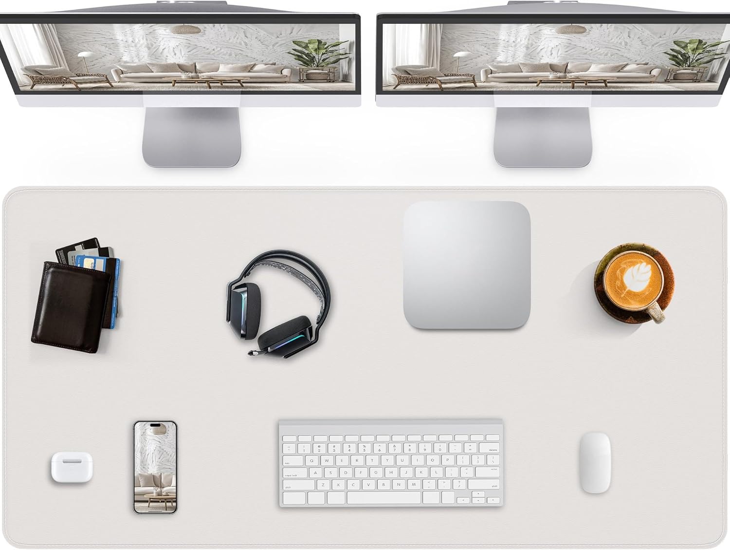 Extra Large Desk Pad Mat - Waterproof Mouse Pad & Desk Protector, Non-Slip XXL PU Leather Gaming Mat for Keyboard/Mouse, Stitched Edge with Ergonomic Support, 55"x24" (White)