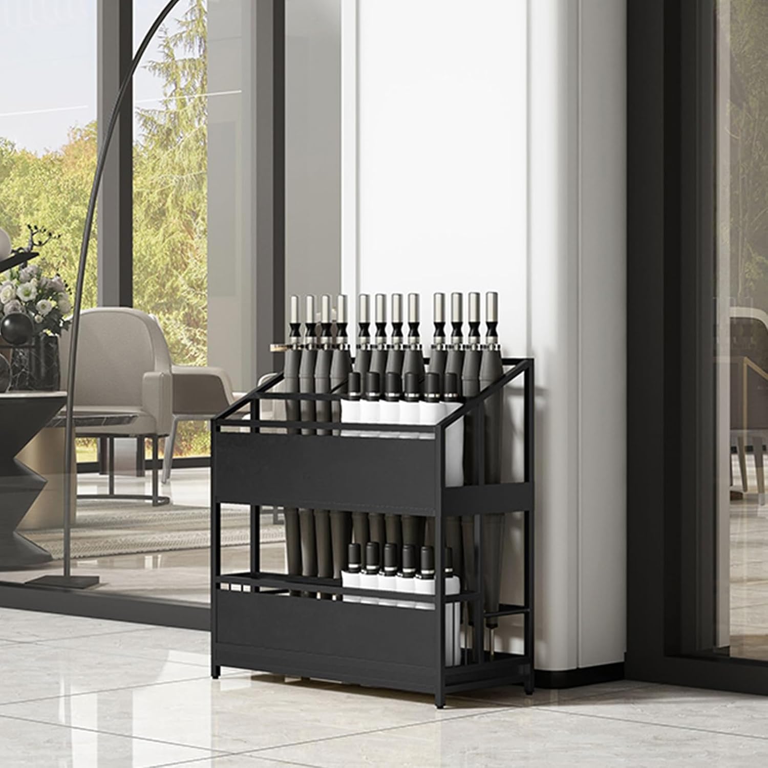- Excellent Storage and Neatness Maintenance: The umbrella holder for entryway has a super-strong storage capacity, allowing both large and small umbrellas to be properly placed, easily meeting the needs of passenger flow. The pull-out water storage tray at the bottom makes it convenient to clean up accumulated water. The indoor entryway umbrella stand prevents water stains from remaining, eliminating clutter and always keeping the environment dry and orderly.