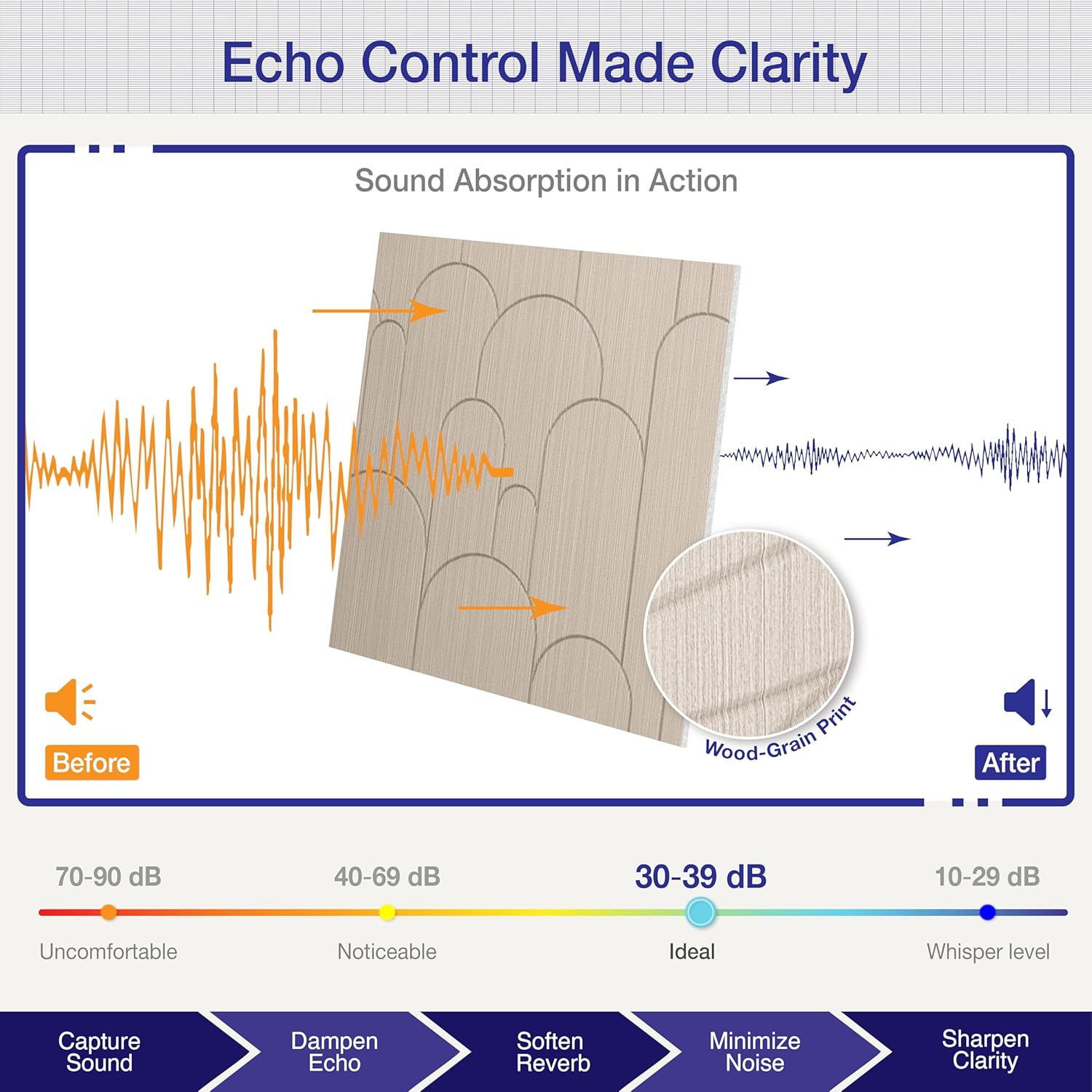 • 🏠【Flexible Coverage for Any Space】Each pack covers 23.6" x 23.6"x 0.4" per panel (One set of 23.2 sq. ft. total covered area), giving you customizable coverage for small offices to large living rooms. Combine multiple sound absorbing panels to create a wall of sound proofing panels for maximum echo control and design impact.