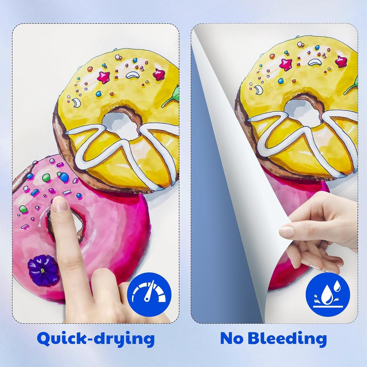 - Superior Opaque Coverage: Our acrylic paint markers use opaque acrylic ink, boasting an industry-leading high covering power of 120%. Just one layer can easily cover the base color. It dries quickly, is waterproof, anti-fading, ensuring that your works remain vivid and long-lasting.