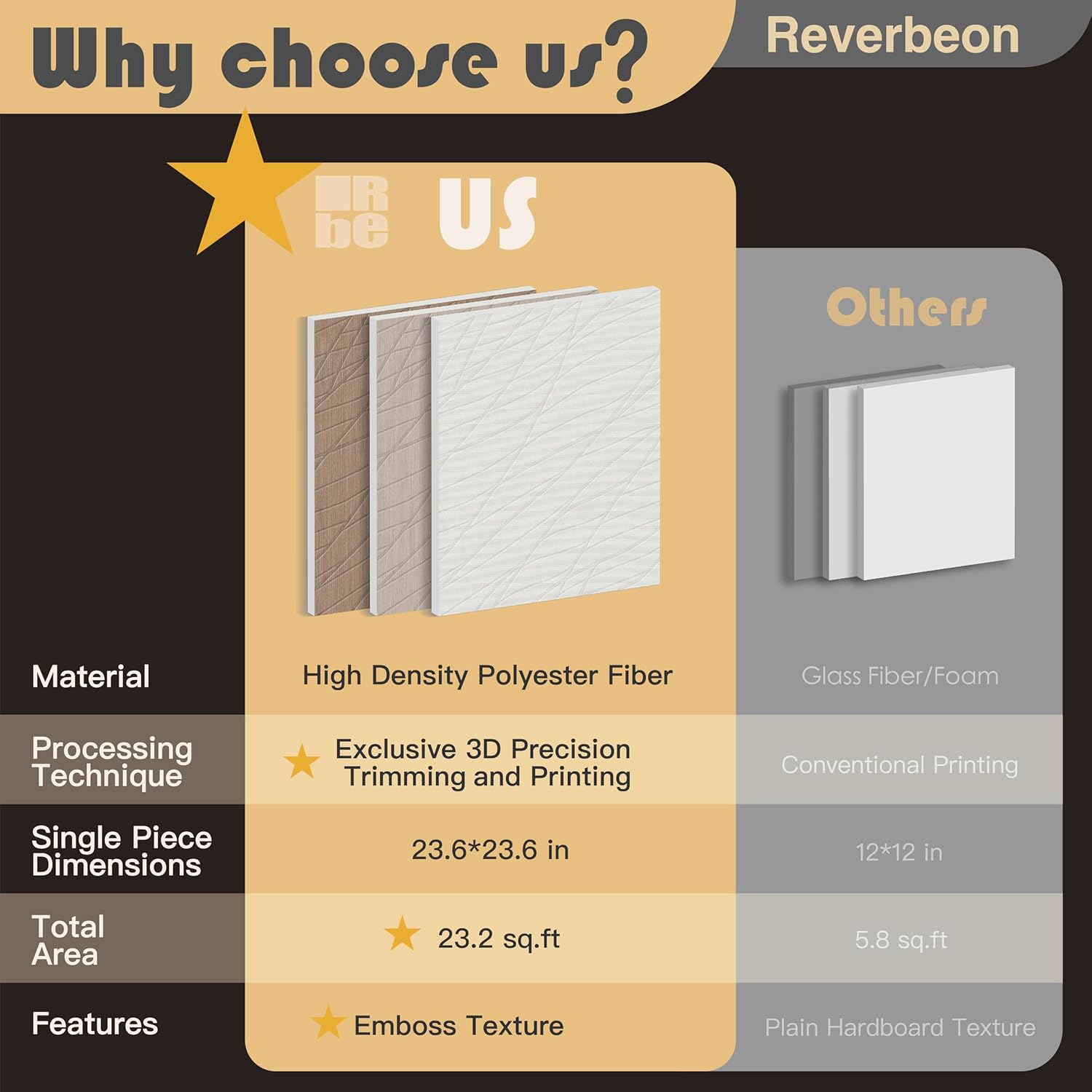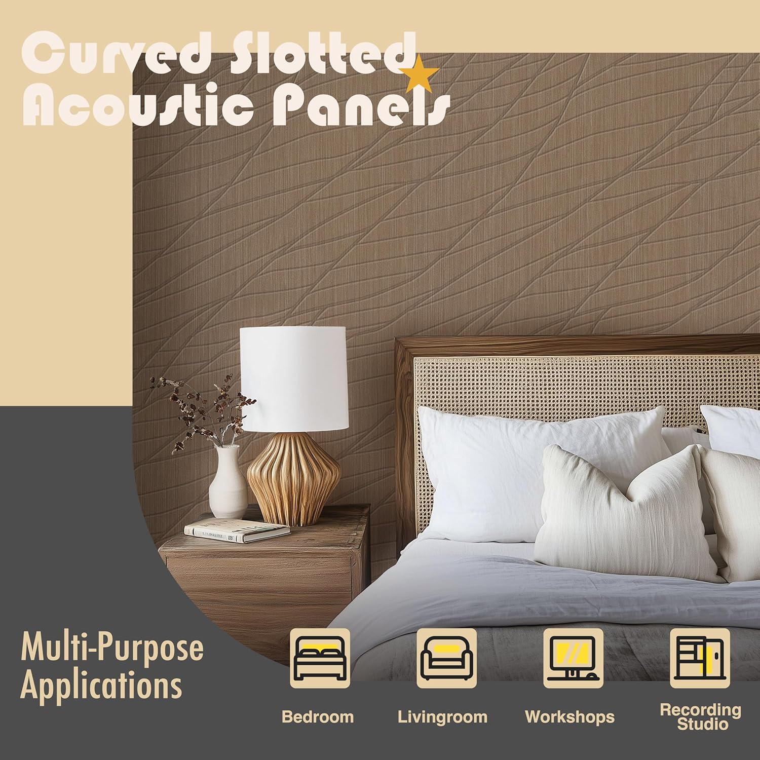 - đ¨ăStylish Wall Upgrade with Unique ColorsăOur sound absorbing panels feature a modern grooved design and a soft tone that blends seamlessly with any dĂŠcor. Slight color variation may occur due to lighting or monitor display, but each panel retains its elegant texture. These sound panels enhance acoustics while adding warmth to bedrooms, offices, and entertainment spaces.