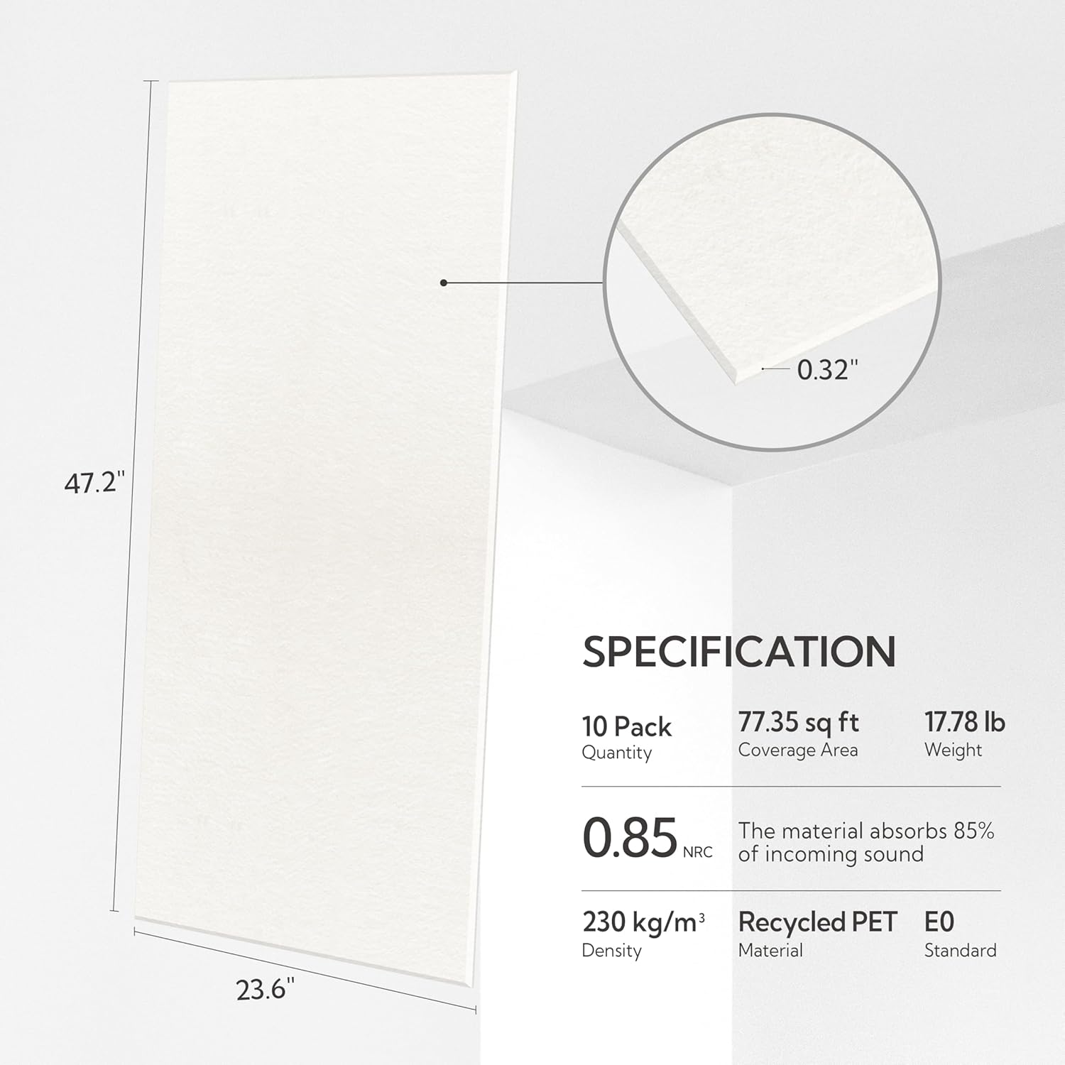 - Packaging: Comes with 10 panels, covering a total of 77.35 square feet. Each Olanglab Accent Wall Panel measures 47" x 23" x 0.31".