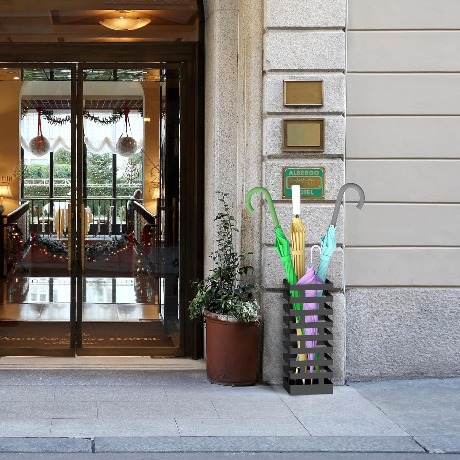 - 【Space Saving】: This indoor umbrella stand for entryway features a compact design that saves space and keeps various umbrellas organized.