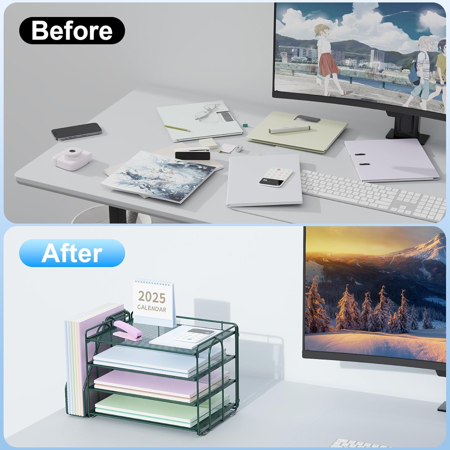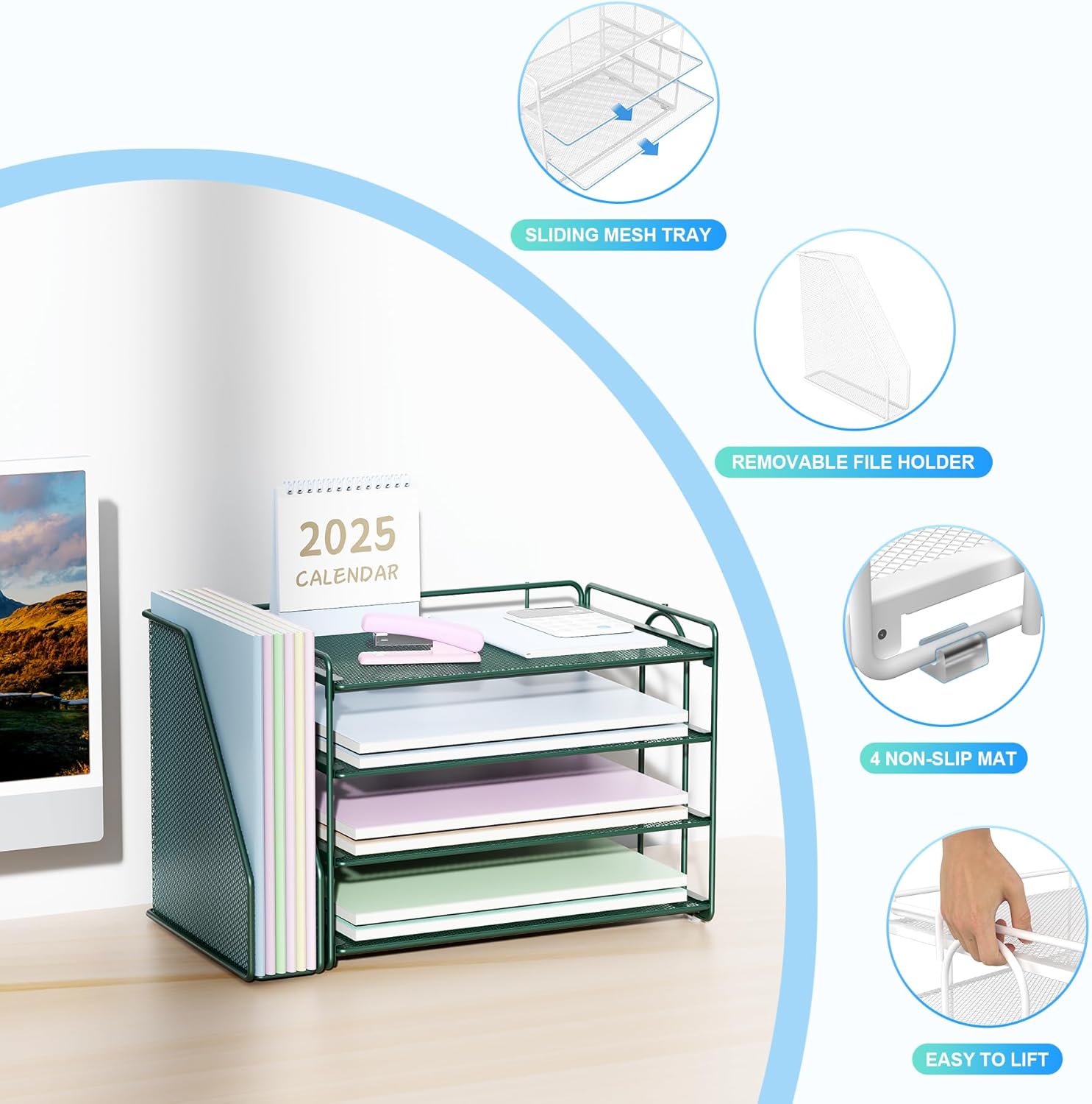 - βΆ Save desktop space: The office desk organizer provides you with 4 paper trays and a vertical file organizer, providing ample space for your desktop and helping to keep your desktop organized and free of clutter.