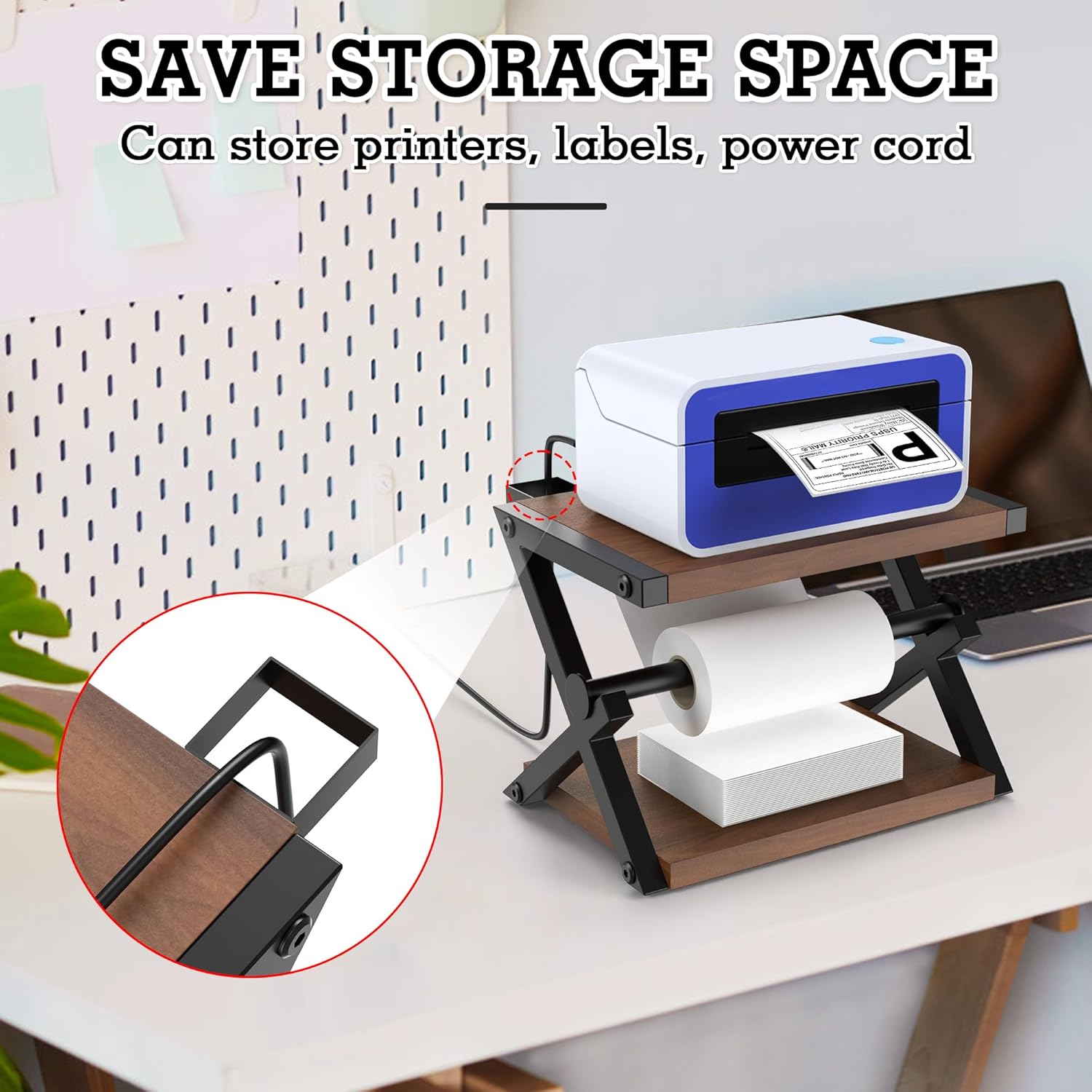 - Multi-functional Label Holders: Designed with functionality in mind, our label roll holder can store printers on top and rolls of labels and folded labels underneath. It not only saves space, but also ensures that your labels are neatly organized and easily accessible. Two extra wiring holes help you organize the wires and can be pasted as needed