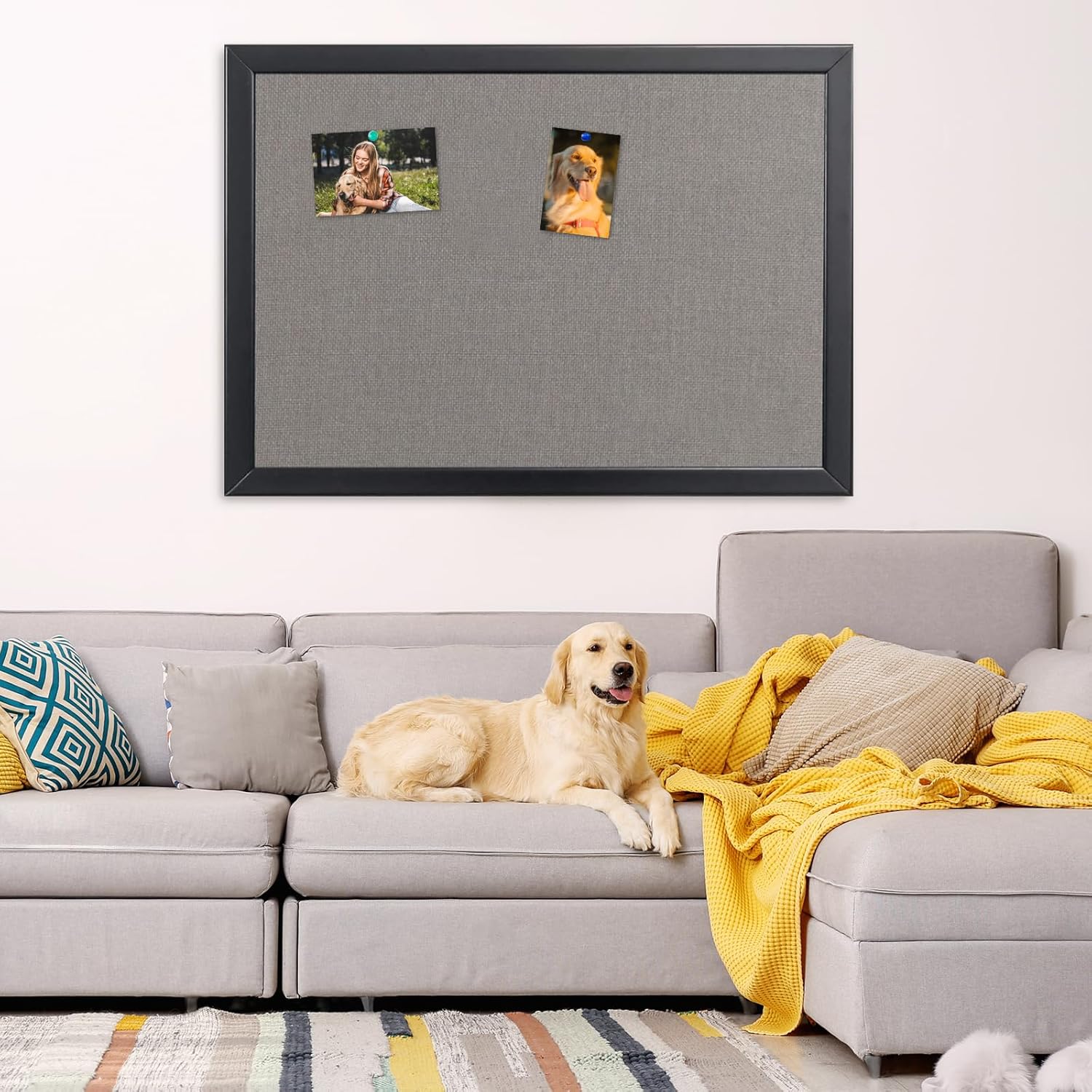 - DENSE CORK WITH CANVAS COVER: Made with thick, high-density cork and overlaid with smooth grey canvas, our bulletin board holds push pins securely and resists crumbling from repeated use. The fabric surface enhances both durability and style, supporting long-term display of notes, photos, or calendars