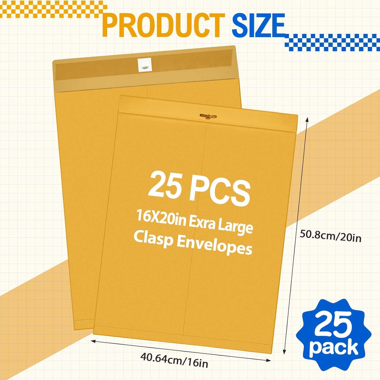 - Extra Large Size: our manila envelopes measure 16 x 20 inches, with space to store documents, and can hold multiple sheets of letter sized paper or other material documents without wrinkling or folding