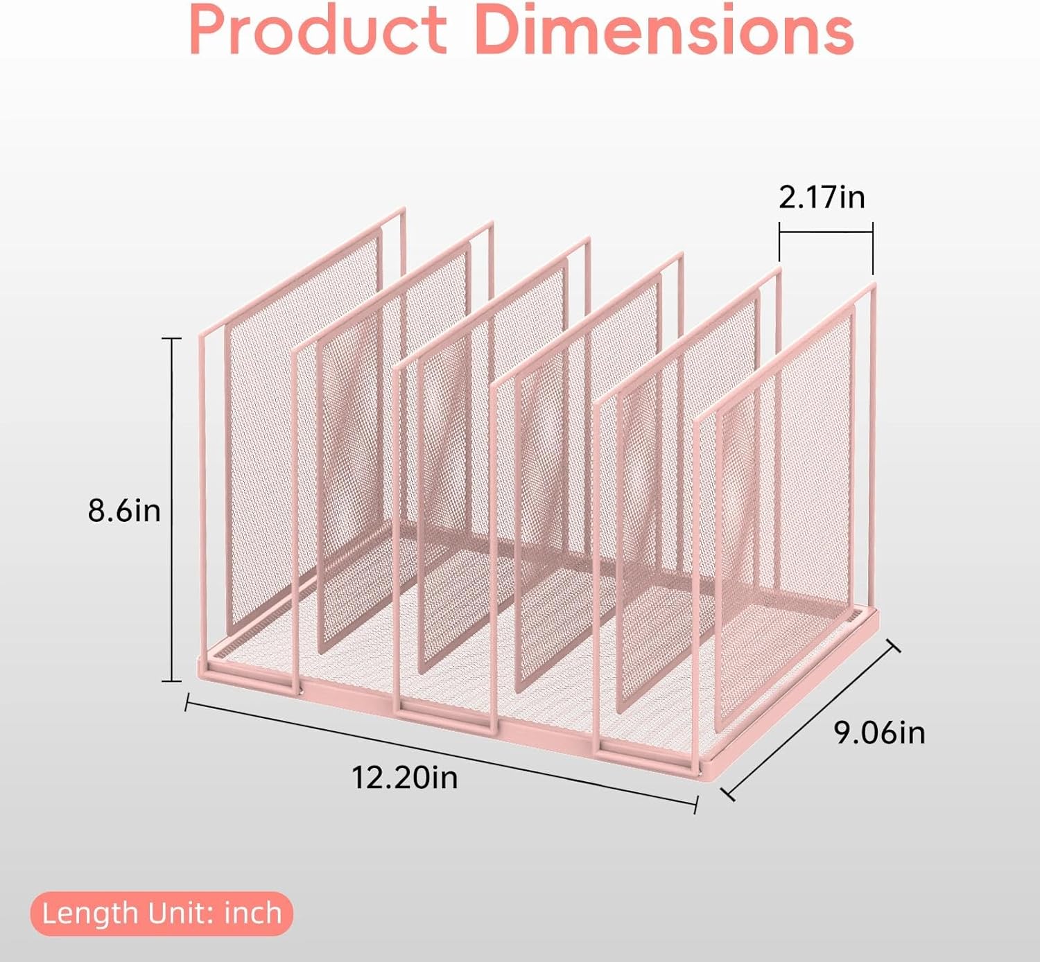 - [Elegant & Clean] This metal desk file organizer features anti-rust, smooth surface. The steel mesh design helps reduce dust buildup. Assembly Dimension:12.2"W x 9"D x 8.6"H