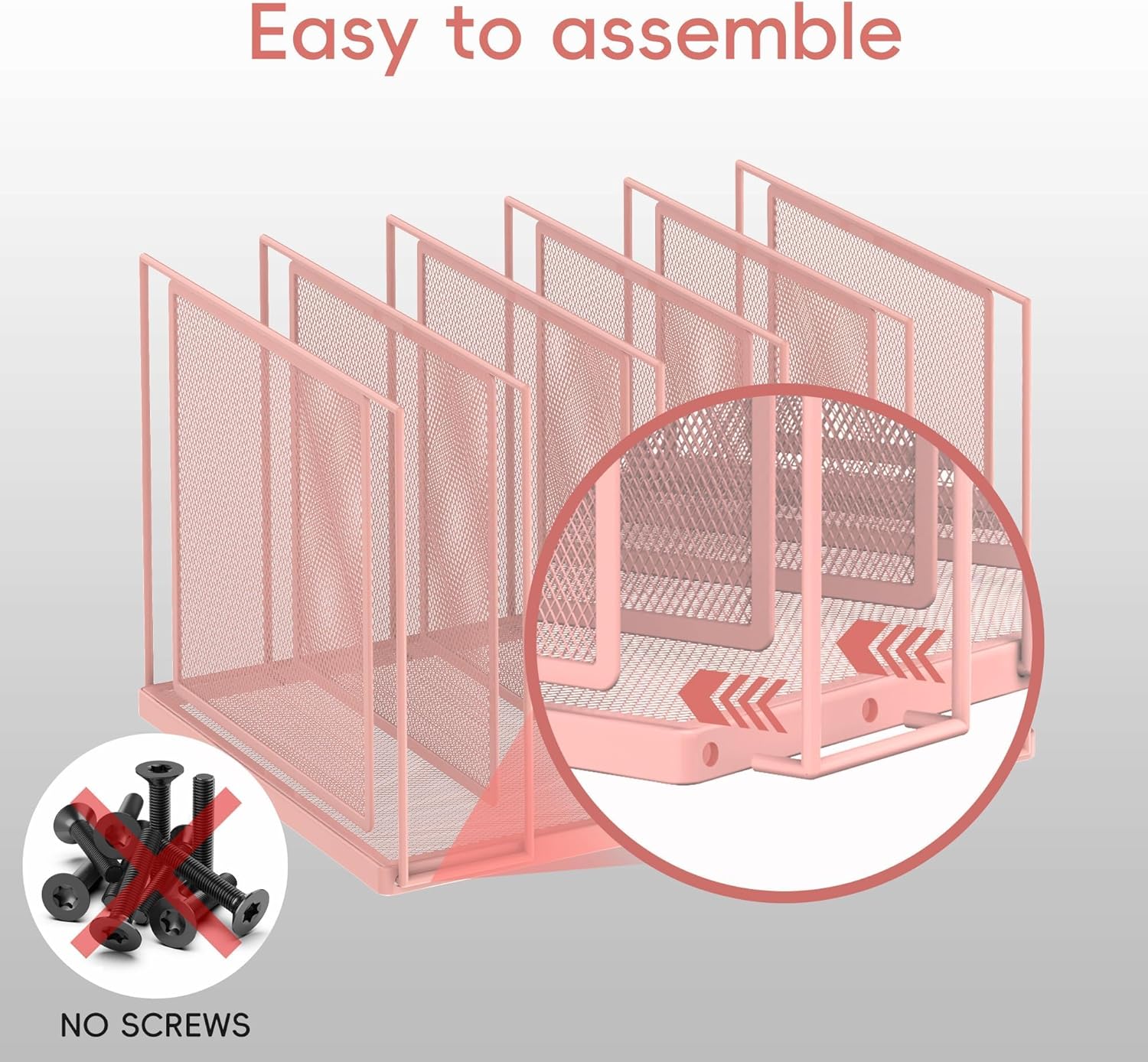 - [Easy to Assemble] No screws, no screwdriver! Just pull the desk organizer out of the box, thread the hook of this file sorter into the holes. Then you can get a desktop file organization much safer and easier.