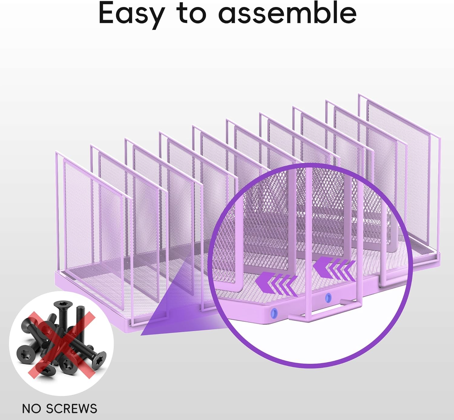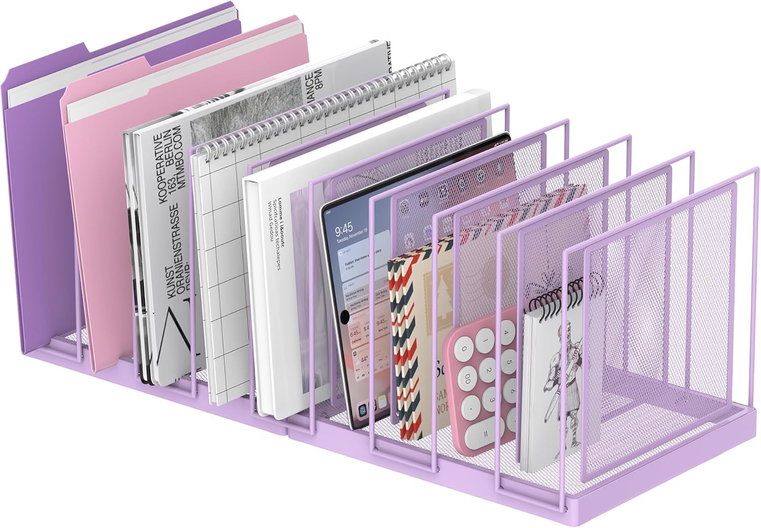 9-Section Desk File Organizer, Vertical File Holder, Mesh Desktop File Folder Metal File Organizer Stand for Office Home Classroom, Purple