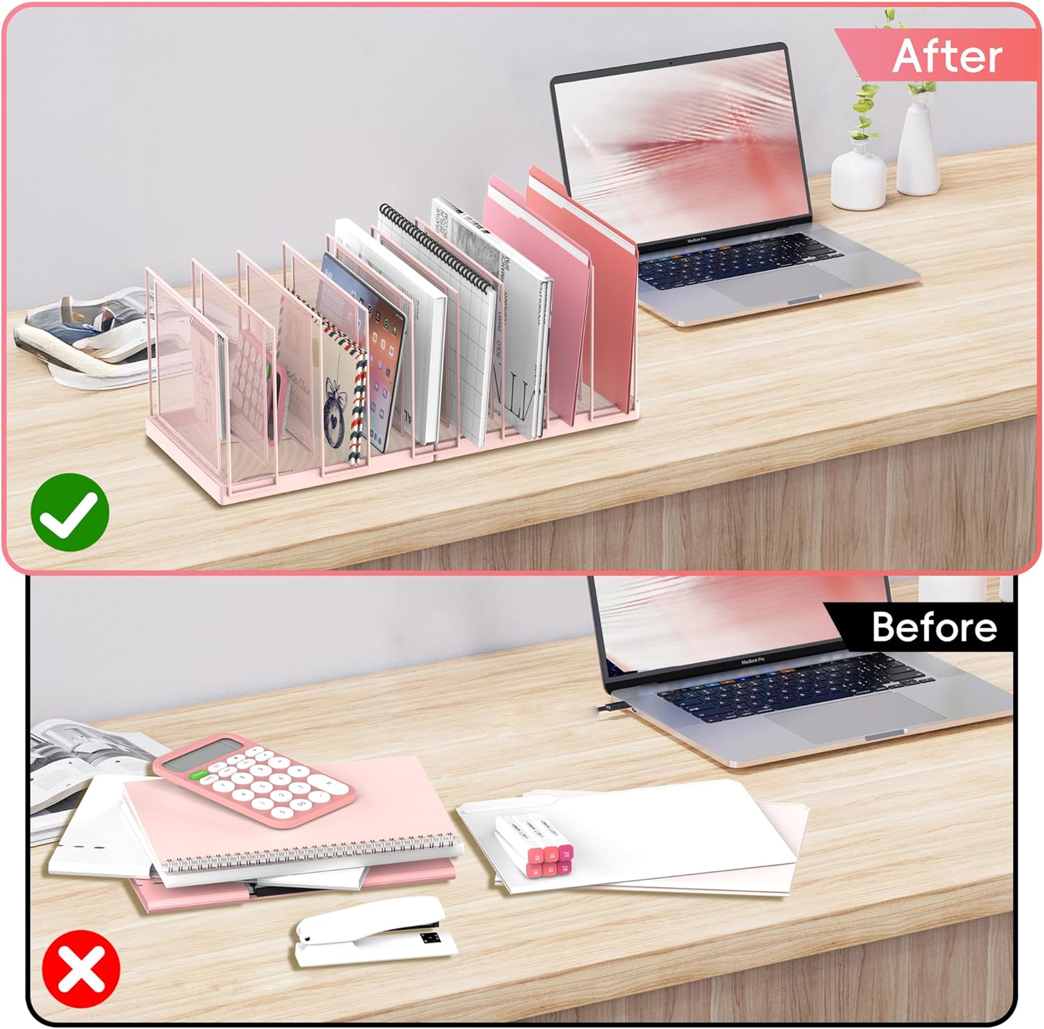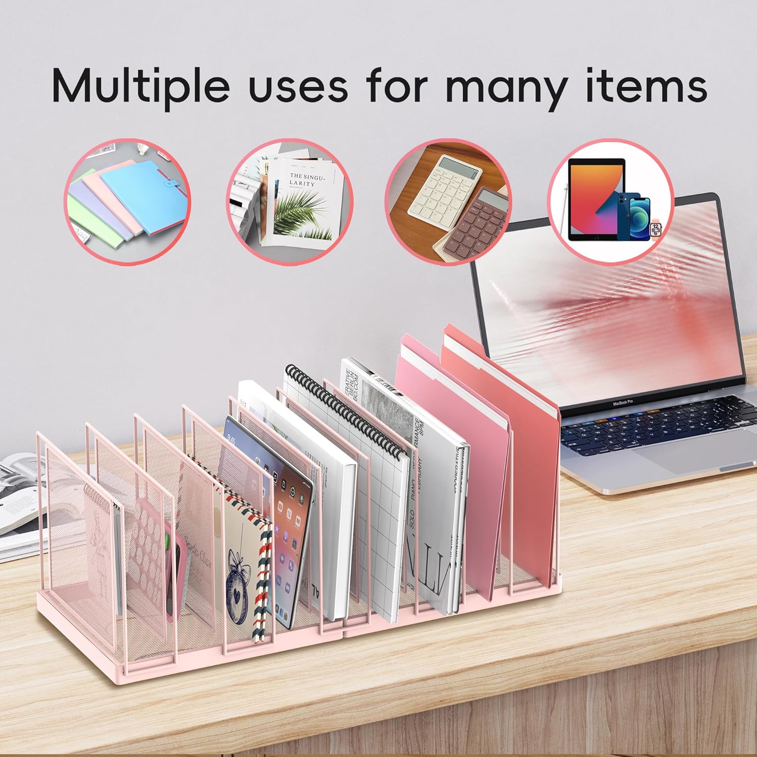 - [9 File Compartments] Our 9-section file folder organizer provides more storage space for files, books, mails, paper and magazines. 9 vertical sorters can hold your documents and laptop upright, allowing you to easily keep workspace tidy and organized.