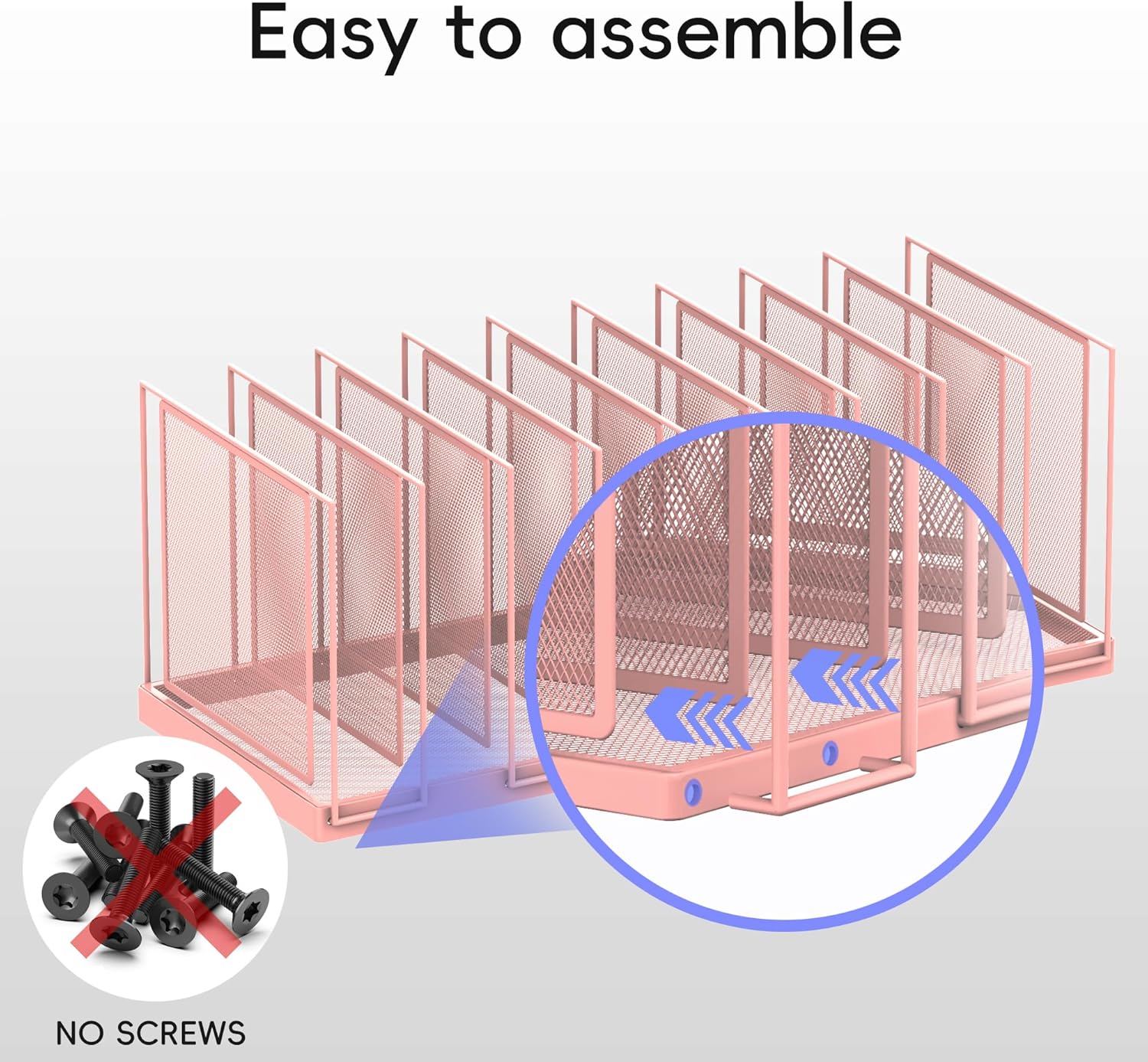 - [Easy to Assemble] No screws! JMHUD folder holder is very easy to assemble on the desk, just tighten a few screws and insert the hook at the bottom of the vertical file into the small hole in the base. So you can use it faster, providing you with a perfect work partner to deal with the messy pile of documents.