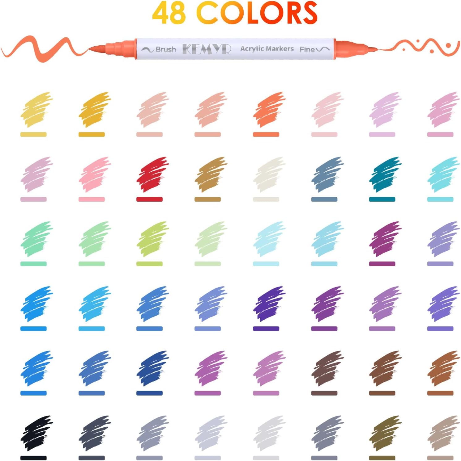 48 Colors Brush & Fine Tip Acrylic Paint Pens, Dual Tip Acrylic Paint Markers for Paper, Wood, Canvas, Stone, Rock, Glass, Fabric, DIY, Ceramic, Art Supplies for Kids and Adults Drawing