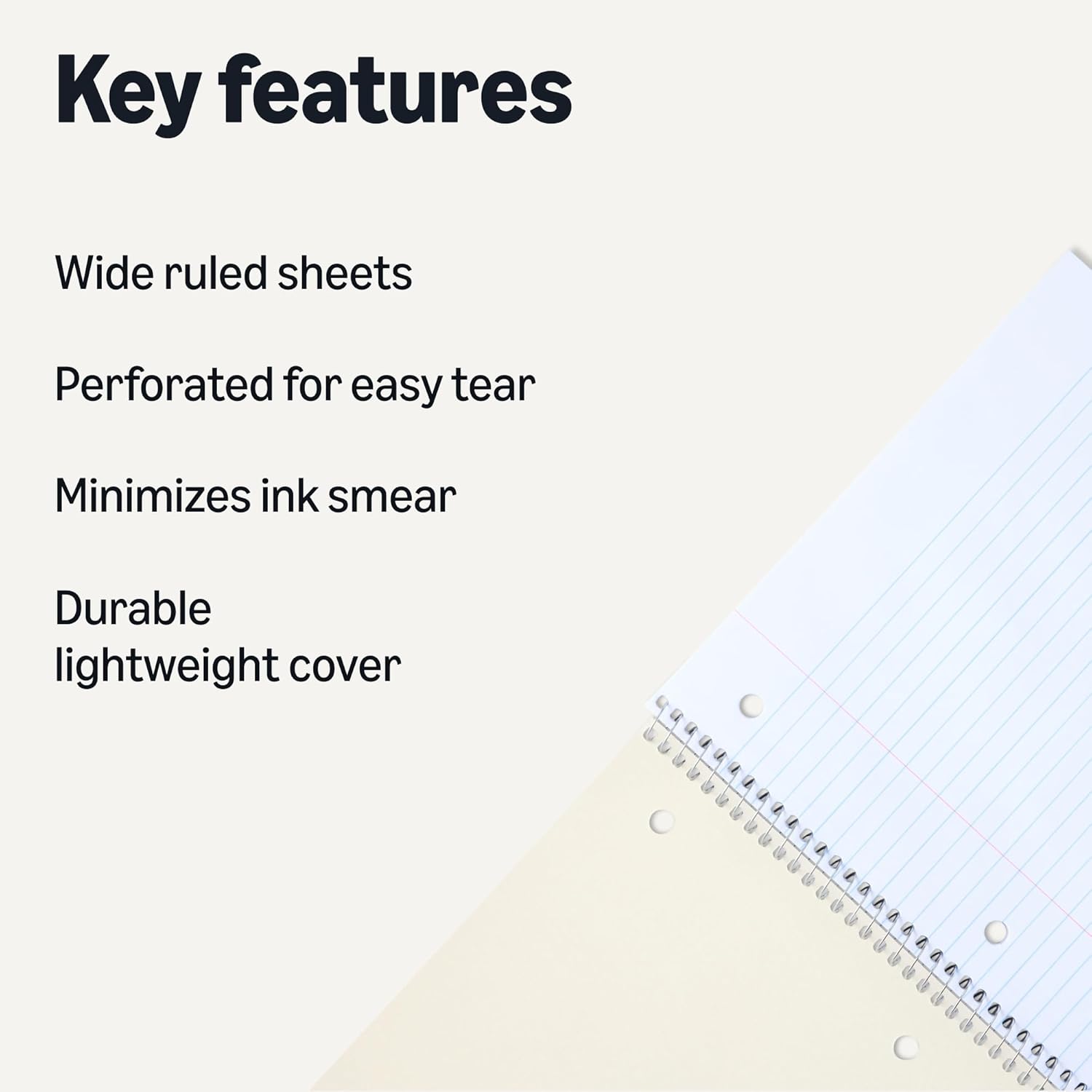 - 70 sheets per notebook; wide ruled lines and perforation for easy removal