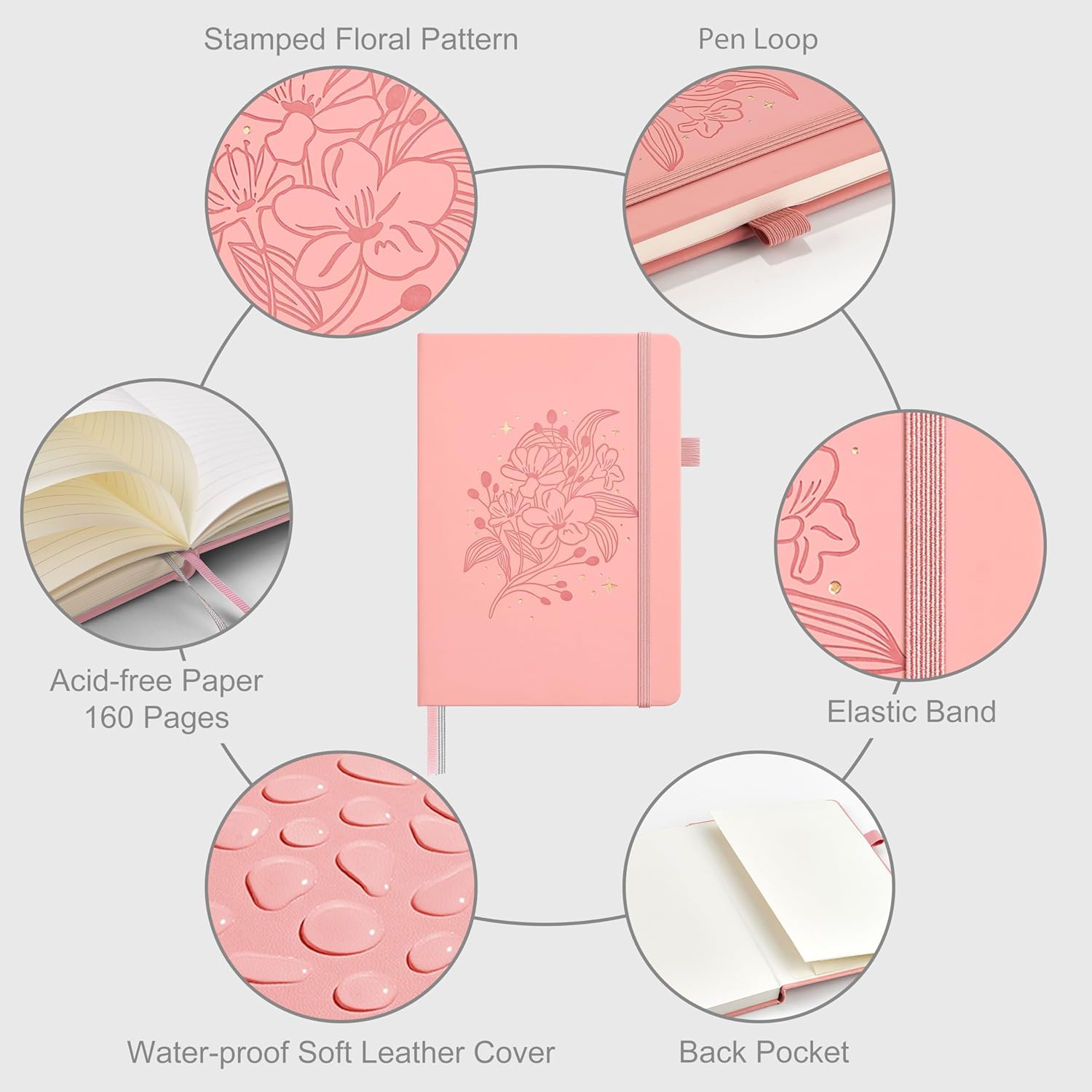 - 160 PAGES LINED NOTEBOOK: 80 sheets/160 lined pages provide ample space for writing. The A5 size (5.7'' Γ 8'') makes this notebook the perfect travel companion.