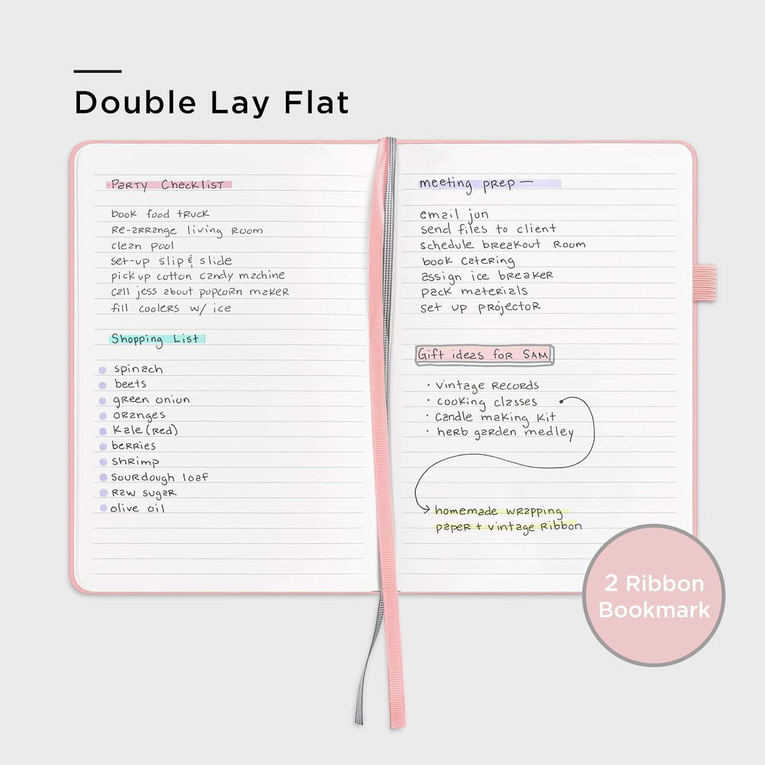 - 180Β° LAY-FLAT DESIGN: The lay-flat design allows for easy writing and ensures that you can utilize every page efficiently. Journaling, note-taking and planning has never been easier. 2 Bookmarks help you find important content faster.