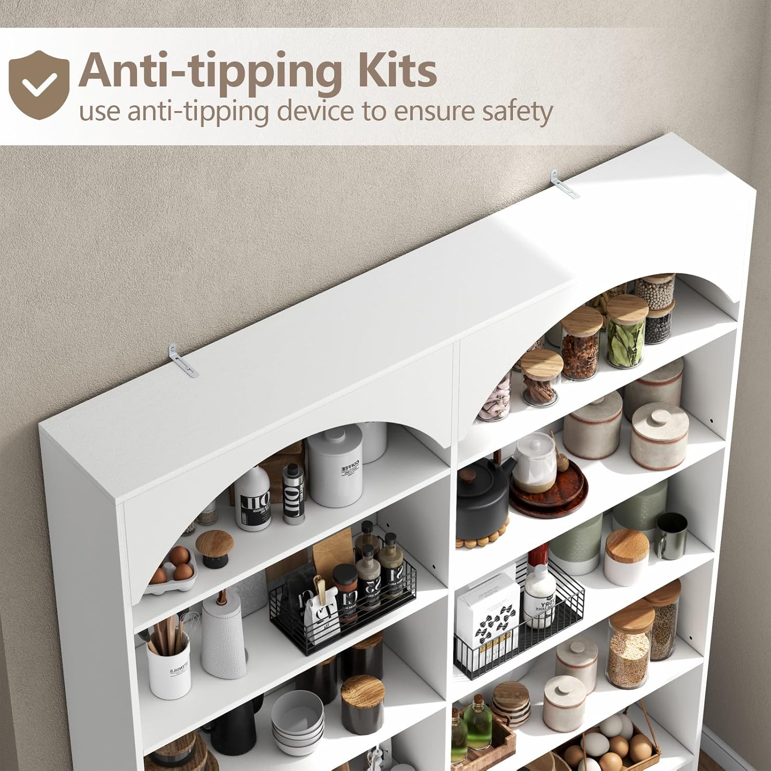 70.8’’ Tall Bookshelf and Bookcase, 7-Tier Double Wide Bookcase Modern Large Open Display Shelves with Curved Baffle for Home Office Living Room (White)