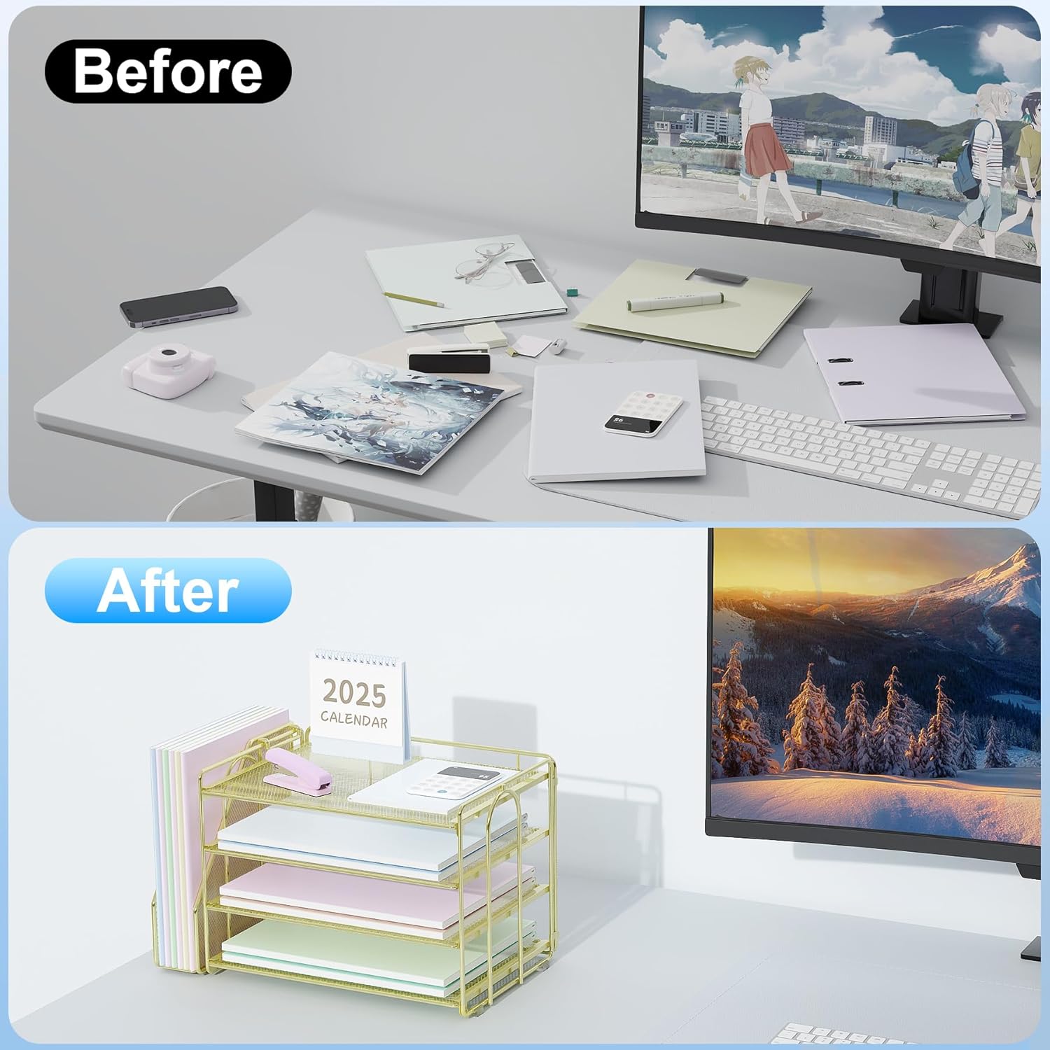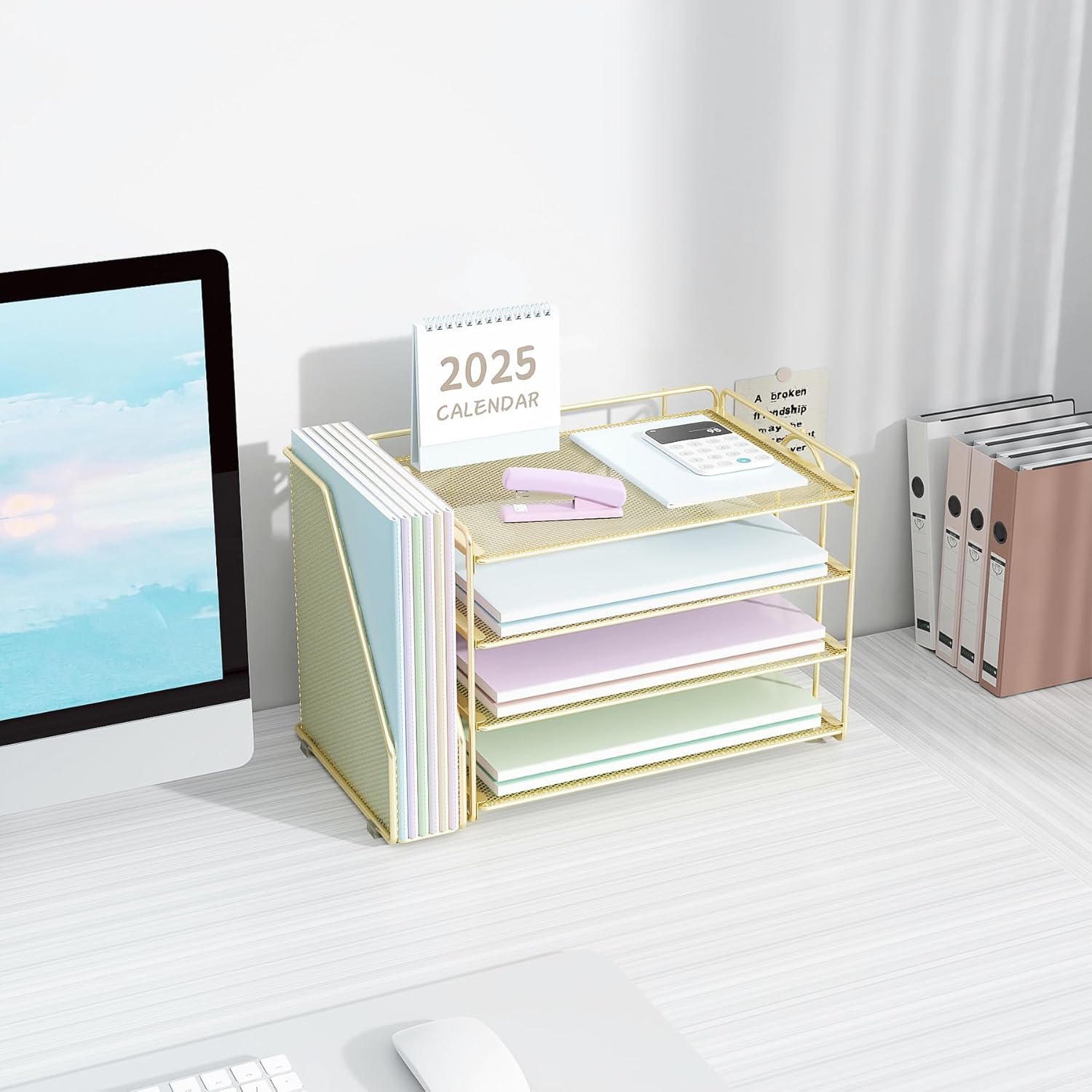 - βΆ Save desktop space: The office desk organizer provides you with 4 paper trays and a vertical file organizer, providing ample space for your desktop and helping to keep your desktop organized and free of clutter.