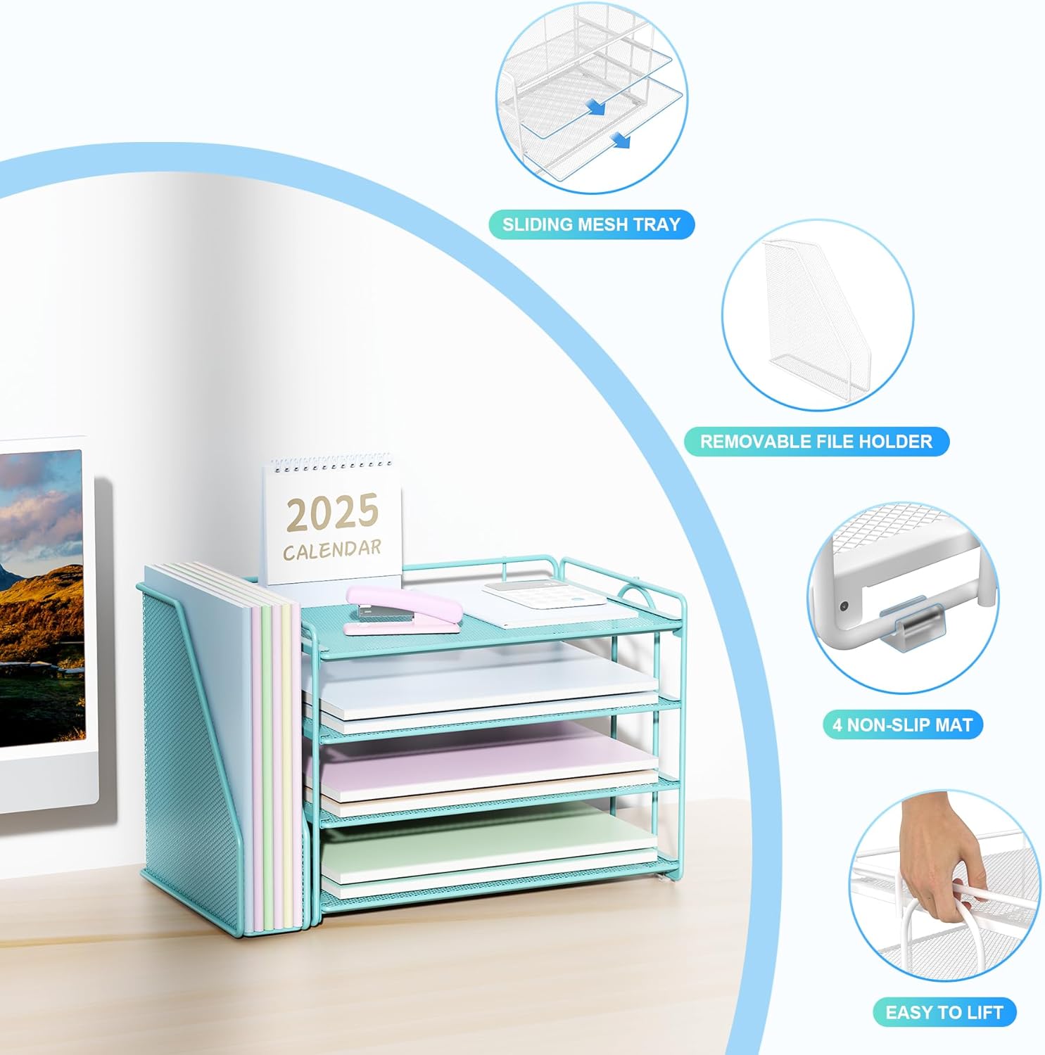 - βΆ Save desktop space: The office desk organizer provides you with 4 paper trays and a vertical file organizer, providing ample space for your desktop and helping to keep your desktop organized and free of clutter.