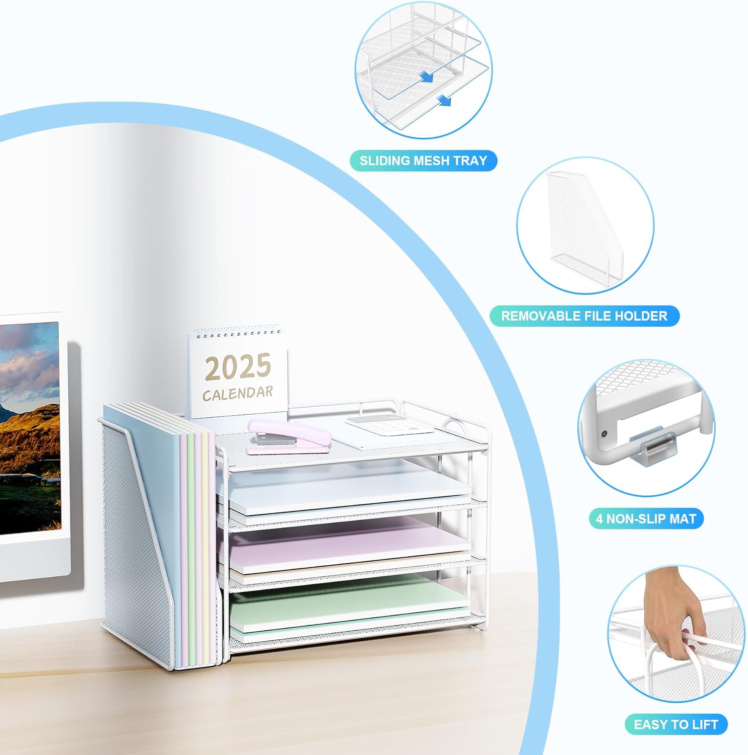 - βΆ Save desktop space: The office desk organizer provides you with 4 paper trays and a vertical file organizer, providing ample space for your desktop and helping to keep your desktop organized and free of clutter.