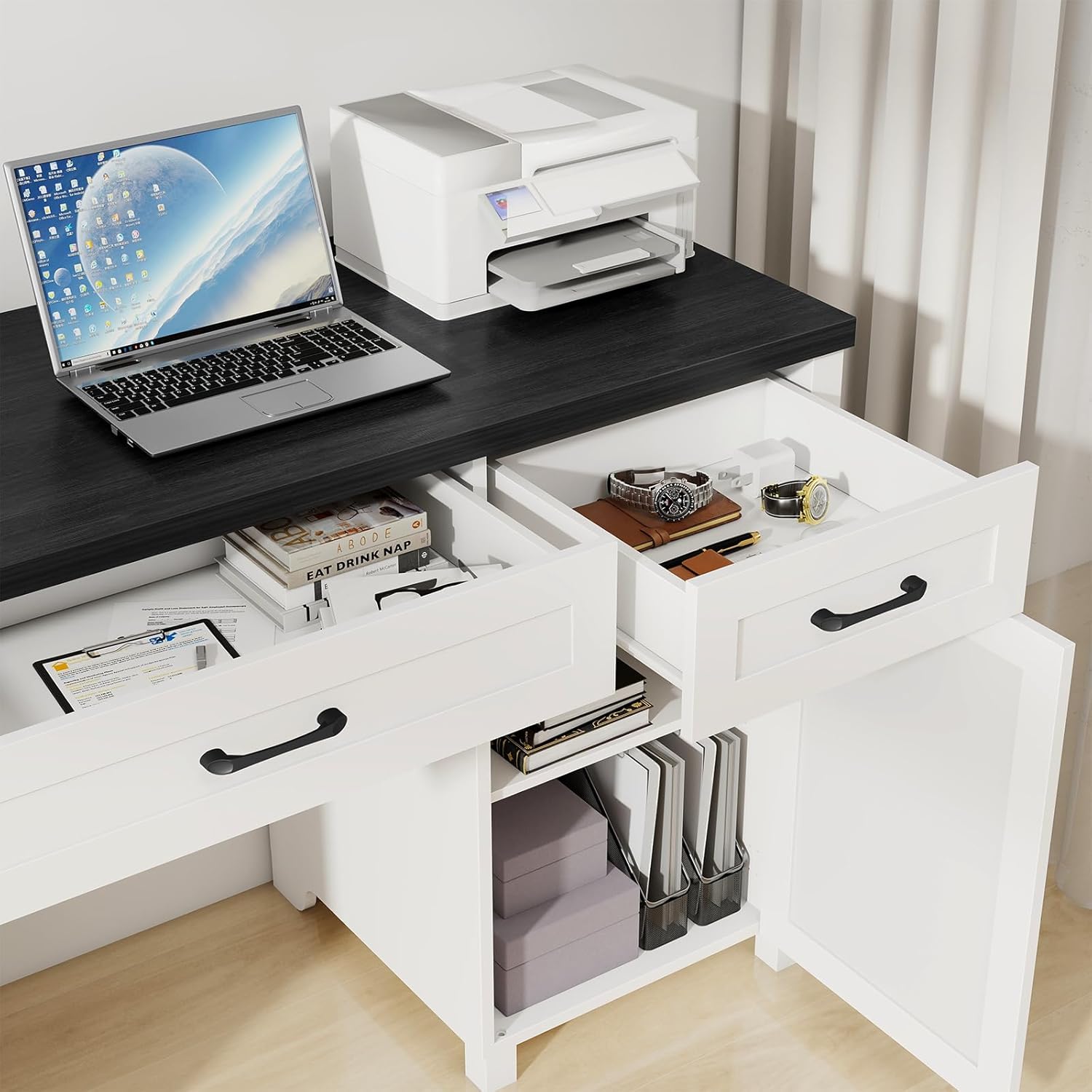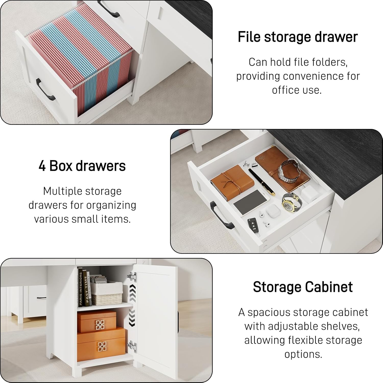 - 【Abundant Storage Capacity】Measuring 61" in width and standing at 67" tall, this expansive executive desk offers enough space for files, computers, and printers. It includes five drawers, with dedicated file drawers that can hold both letter and A4-sized documents. Additionally, it features spacious storage cabinets, providing an organized solution for files, books, and other essentials.