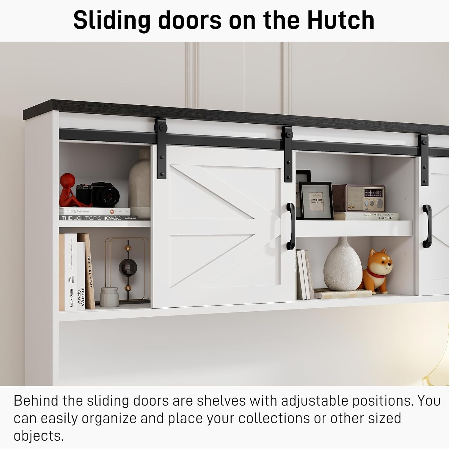 - 【Rustic Farmhouse Desk】This elegant executive desk with a hutch and sliding barn-style doors embodies the charm of a farmhouse design, making it a superb addition to any home office setup. Featuring a spacious desktop and ample storage options, it promotes an organized and cozy workspace.