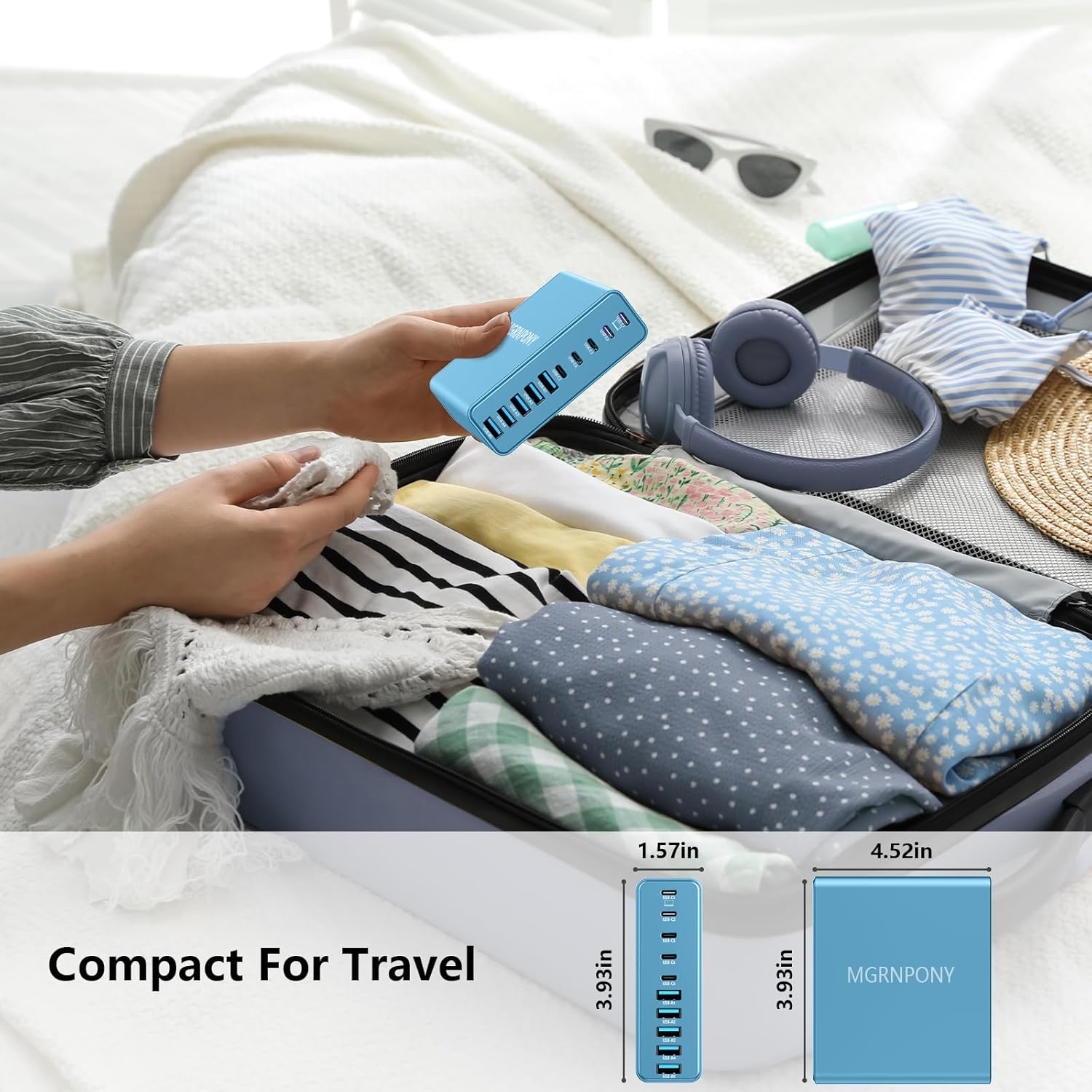 - Compact & Travel-Friendly: This compact charging station is designed for on the go with lightweight feature. You can place it horizontally or vertically to save space. Just plug it into a regular outlet with our 5ft/1.5m power cord, and you wonโt need multiple bulky chargers when traveling. Charge all your devices with one sleek, portable solution.