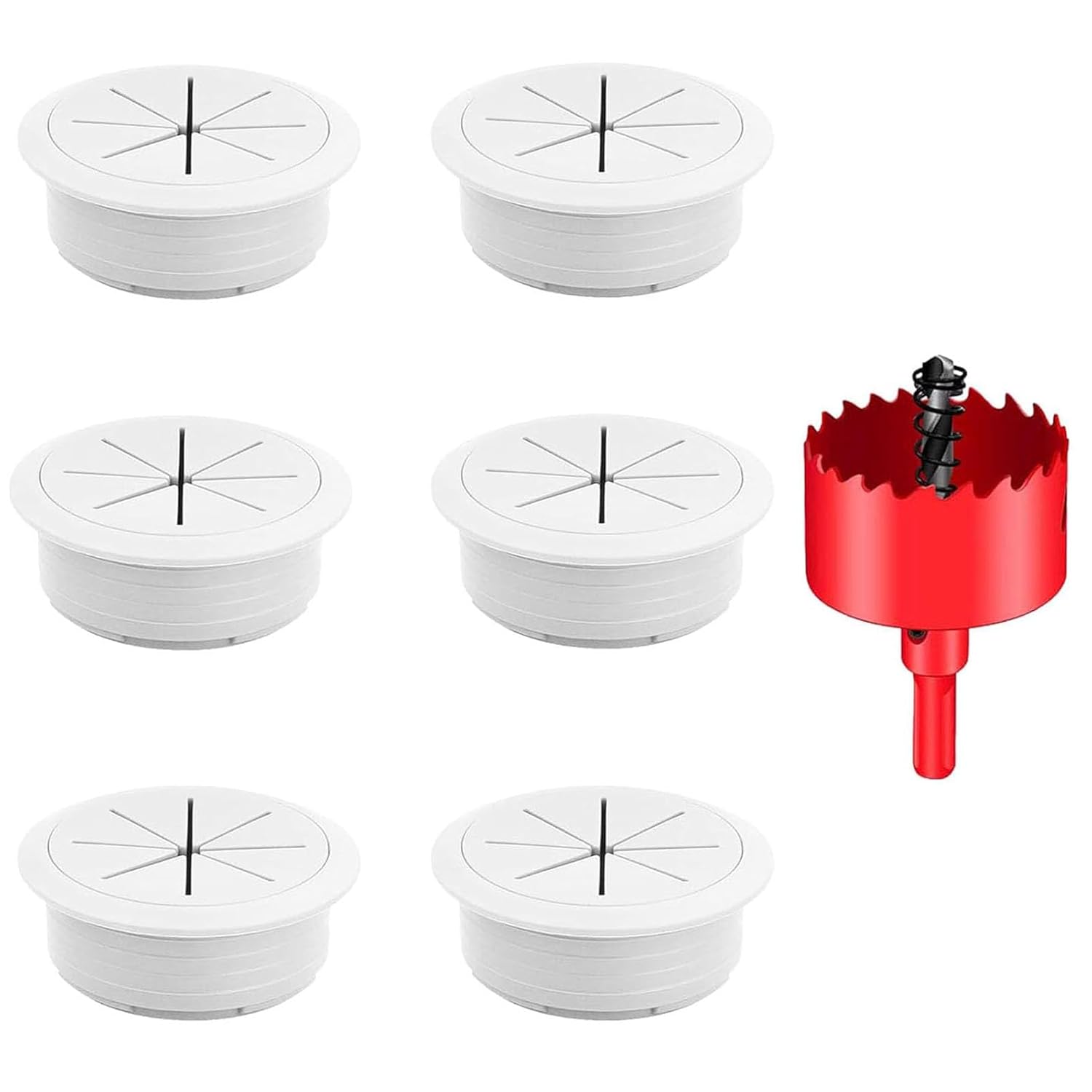 TuTuYa Desk Grommet, 6PCS Flexible 3-1/6inch (80mm) White Desk Cable Grommet Desk Cable Hole Covers with Hole Saw, Ideal Solution for Office and Home Table Cable (White, 3-1/6inch_80mm)