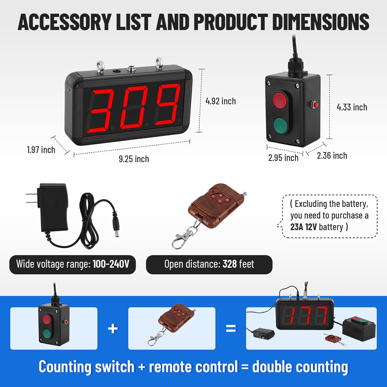 - Digital lap counter:This device is equipped with a 3-button switch box, you can count from any initial value, 3 different color buttons for cumulative reset function, providing flexibility for various counting needs