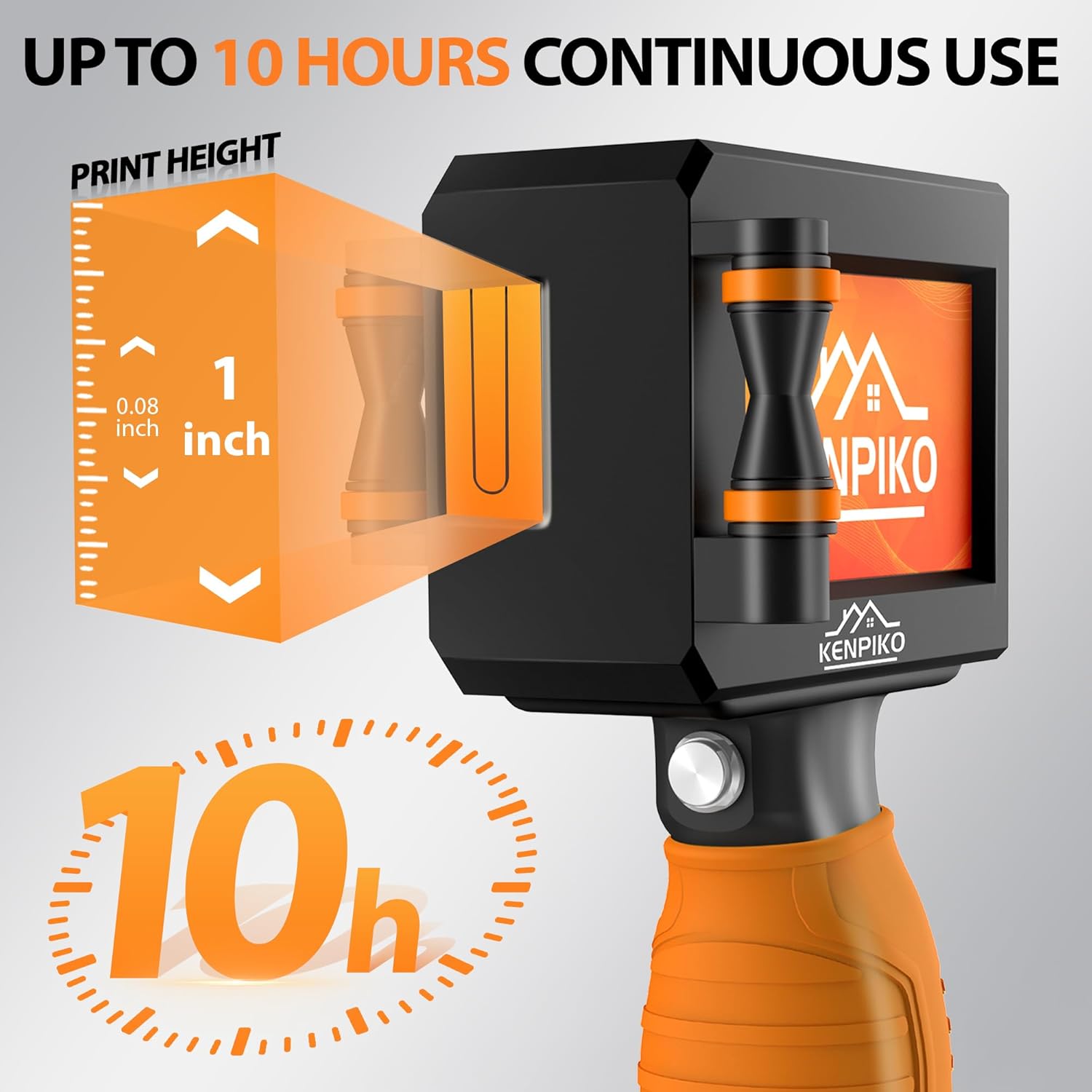- Extended 1 Inch Print Height & High-Resolution Precision This handheld inkjet printer outperforms standard 0.5” models with adjustable multi-lines of 0.08 inch (2mm)-1 inch(25.4mm) print height. Delivering up to 600dpi clarity, this portable inkjet printer ensures professional-grade prints for text,date,barcodes,logos,symbols,numbers,BMP/JPG/PNG images,ideal for warehouses, retail, or construction workflows