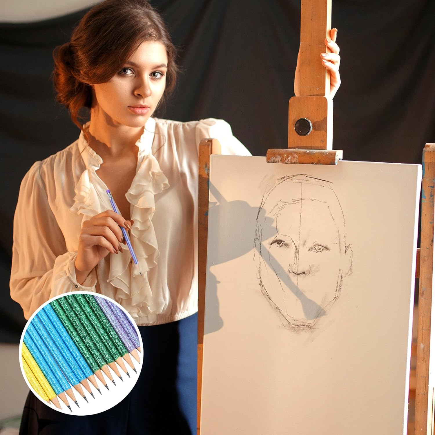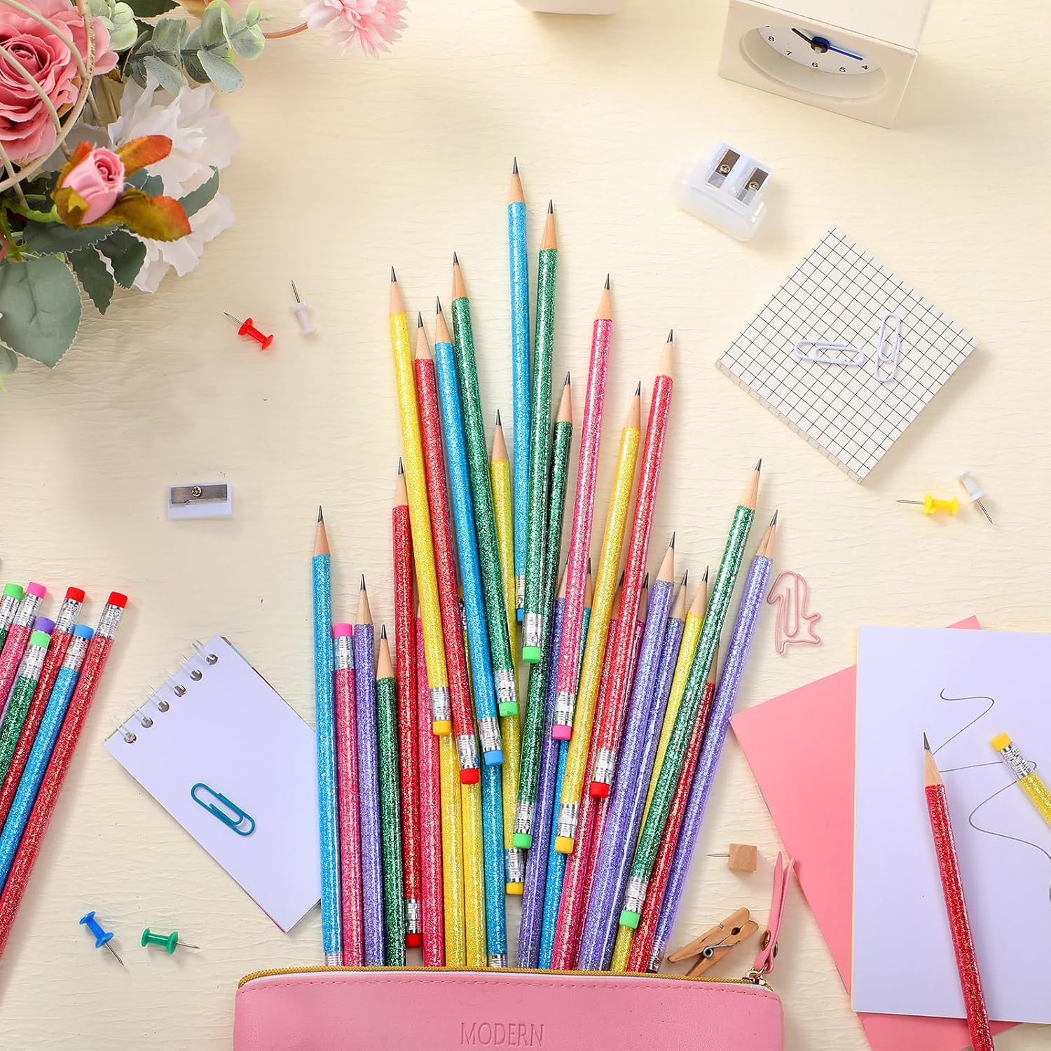 TecUnite 60 Pcs HB Pencils #2 Unsharpened Wood Cased Pencils with Eraser Hexagonal Pencil Cute Graphite No 2 Pen for Adults Gifts Exam School Office Sketching Learning (Glitter Color, Silver)