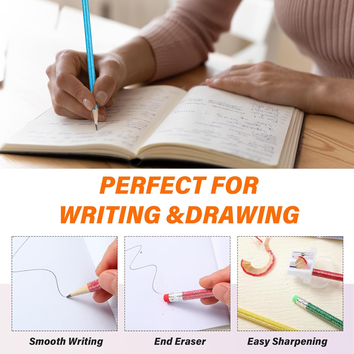 - Complete Your Writing Quest: dive into a writing journey with 60 pieces of quality wood cased pencils; Each plentifully packed kit comes with yellow barrel pencils capped with red erasers, wrapped in silver metal, ensuring your daily study and drawing needs; It also serves as an ideal supply that you can delightfully share with classmates and friends