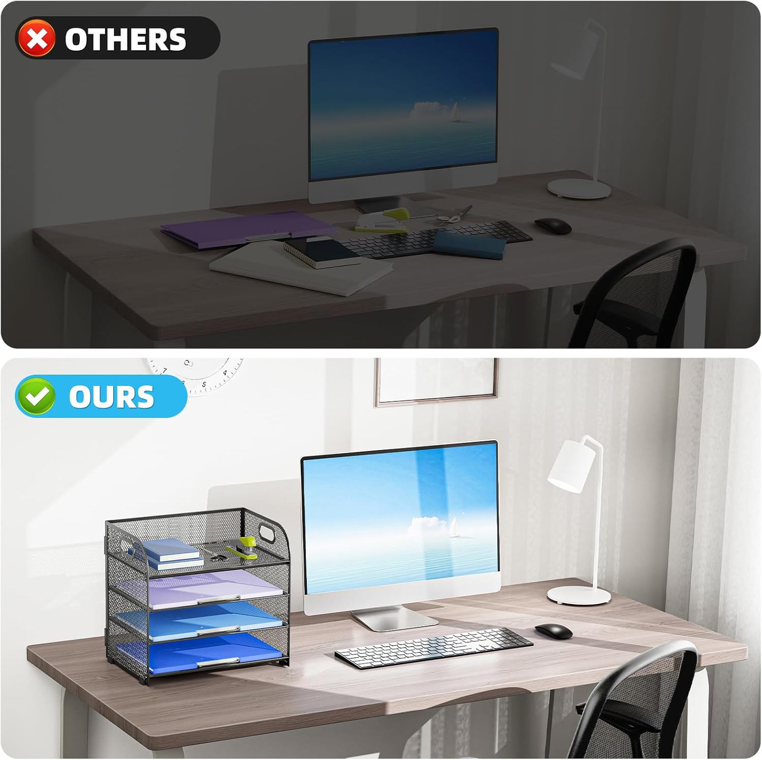 - 【High Qualty】 The mesh desk file organizer is made of lightweight durable metal mesh and reinforced with a solid steel frame that makes it have long-lasting strength and reliable performance