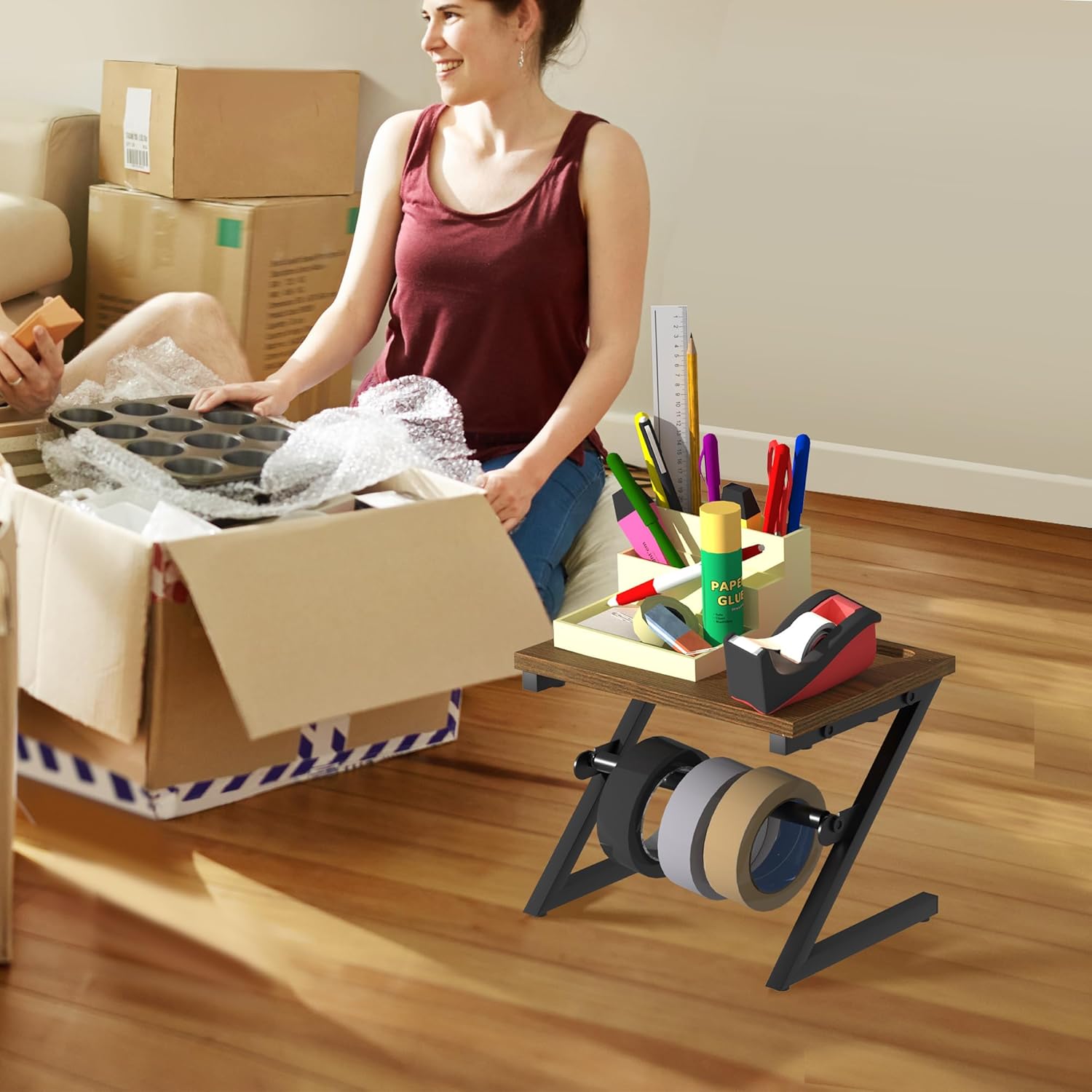 - STURDY CONSTRUCTION: Our label holder for thermal printer are made of durable wood and iron, with better load bearing capacity , which can put down different types of label machines. It also has a non-skid pad design on the bottom, so that the sticker roll holder can remain stable during the use of the labeling machine