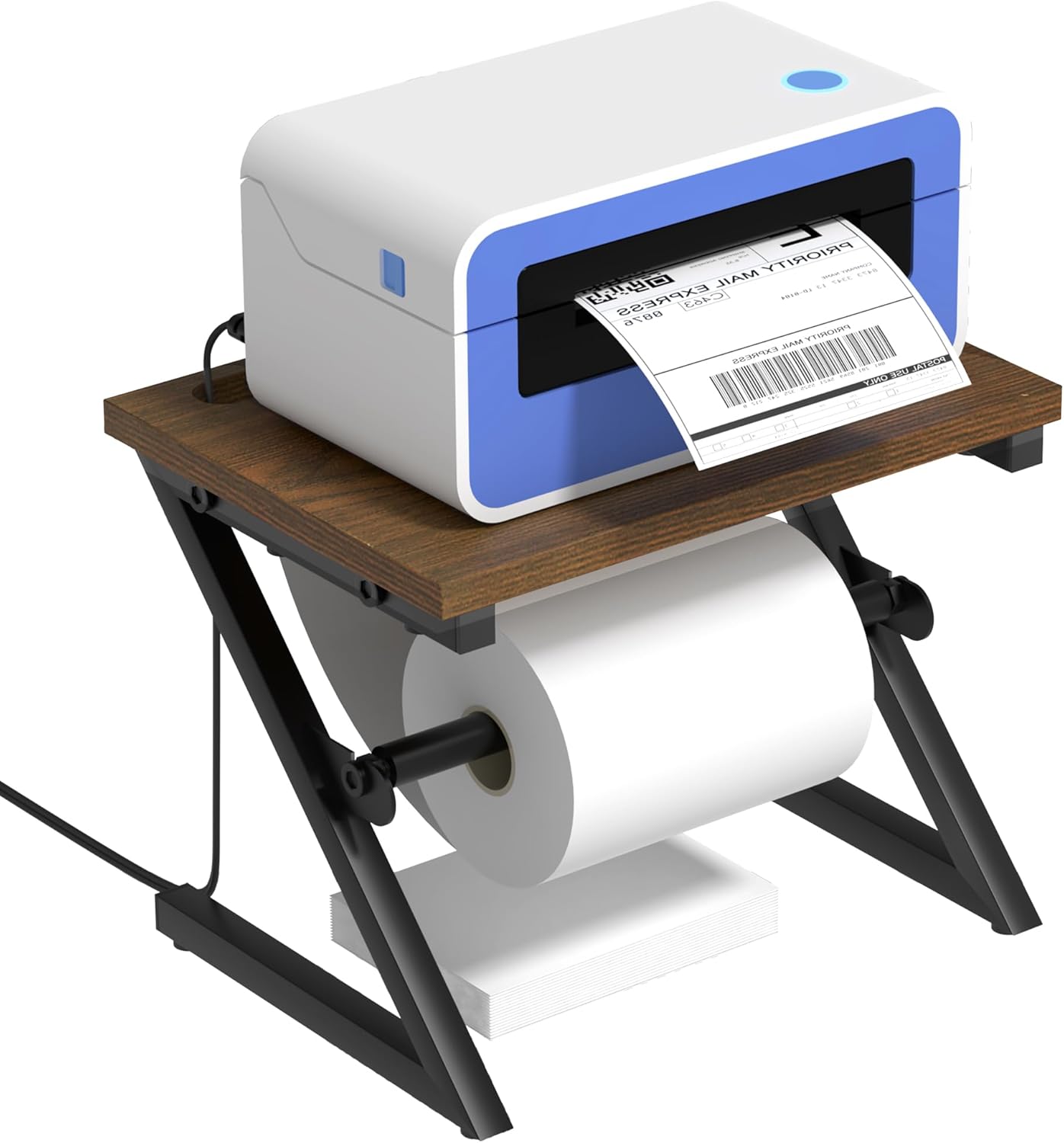 - MULTI-FUNCTIONAL LABEL HOLDERS: Designed with functionality in mind, our label roll holder can store printers on top and rolls of labels and folded labels underneath. The upper level has holes on both sides to hide power cords and provides space for removable sticks to keep your workspace organized