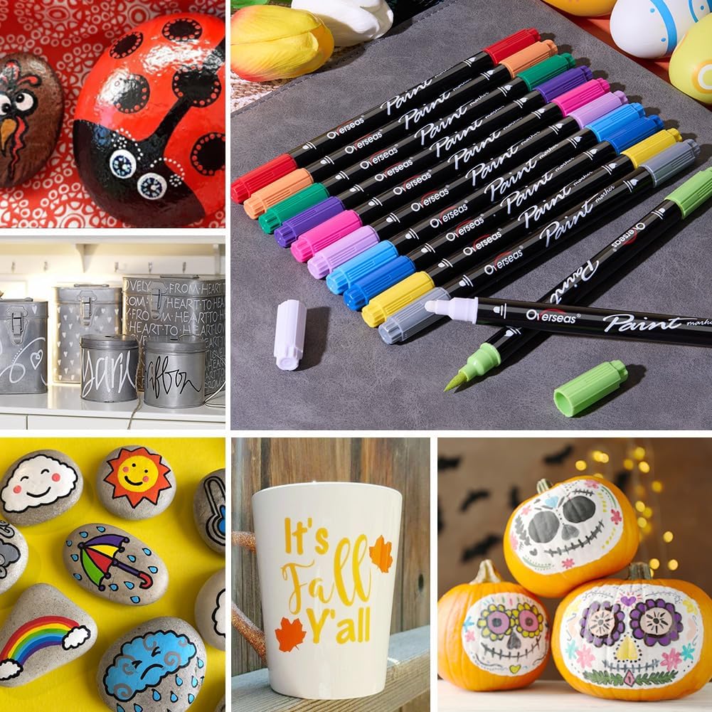 - Bright and Vibrant Color: Rich and vivid color ensure the beauty of your artwork. Overseas dual tip markers can work on multiple surfaces such as wood, rock, glass, ceramic, fabric, metal, plastic, leather, rubber, canvas, resin, shoes, mugs, tires and more