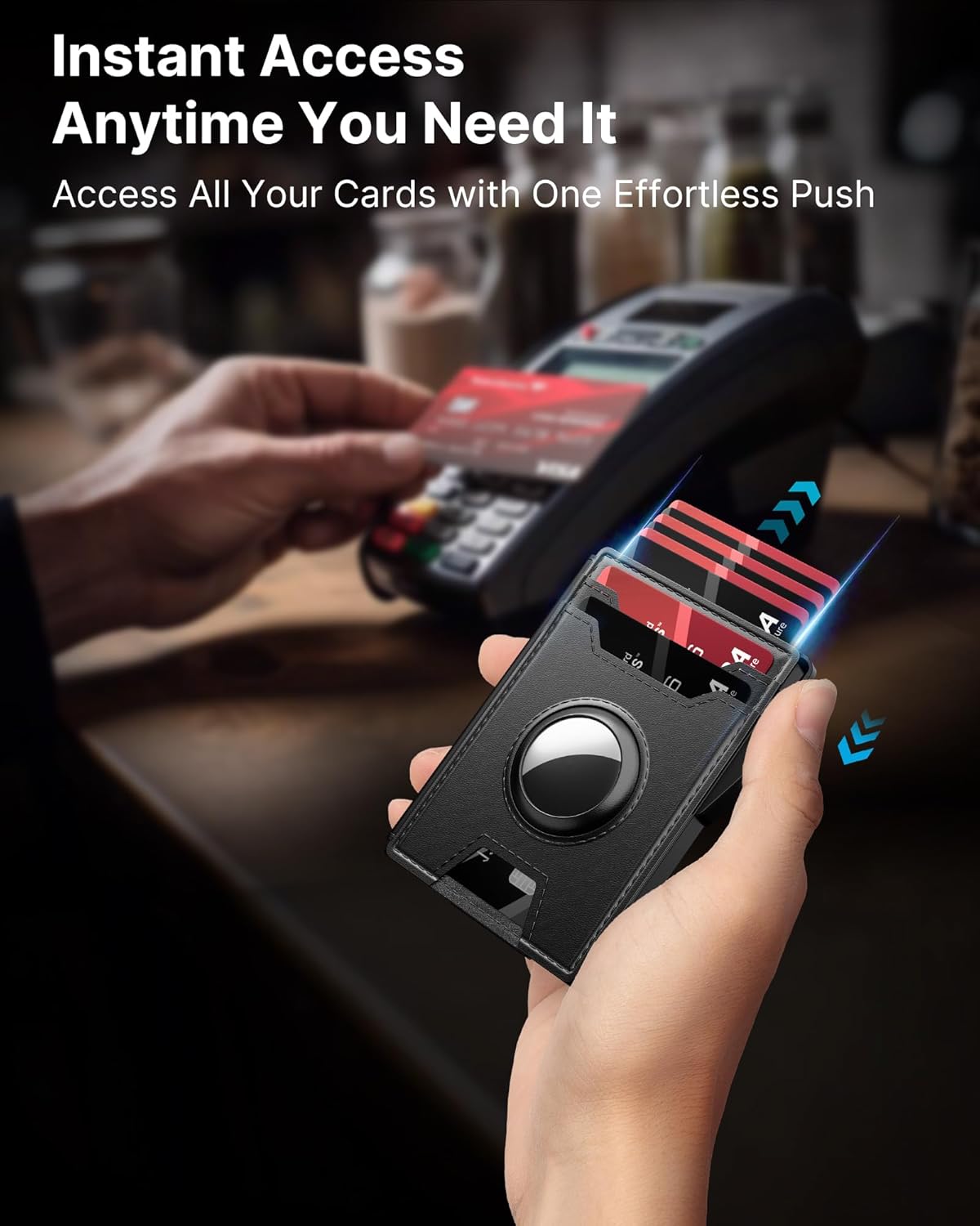 - 【QUICK CARD ACCESS】Tired of fumbling around with your wallet to find the right card? This men's wallet features a pop-up card case that can hold up to 6 cards, and the desired card can be quickly accessed with the press of a button. No more holding up the line at the checkout!